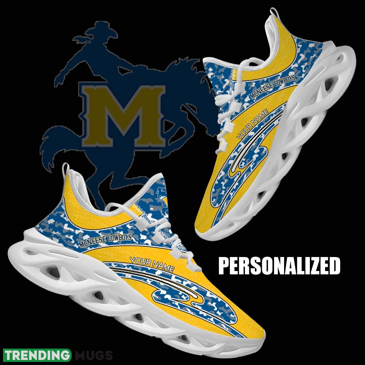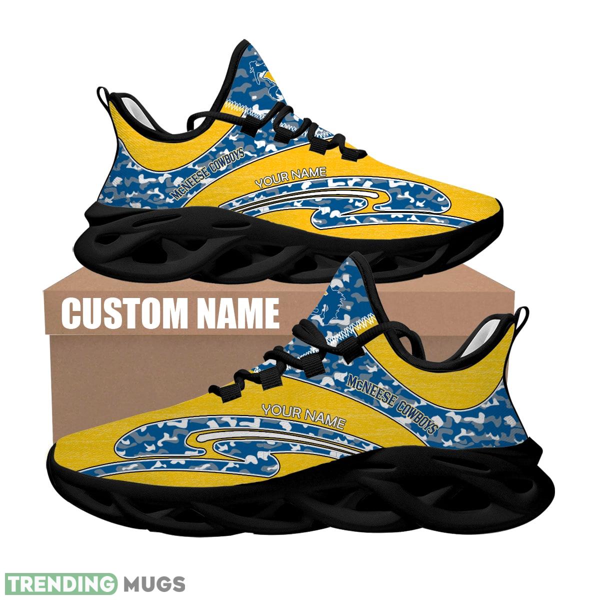 Stand out from the crowd with our Personalized Camo Design NCAA2 McNeese State Cowboys Max Soul Shoes Symbol Chunky Sneaker! Show off your team spirit in style with these unique and eye-catching sneakers. Made with high-quality materials and featuring a chunky sole for ultimate comfort, these shoes are perfect for game day or everyday wear. Don’t blend in with the crowd – make a statement with our Personalized Camo Design Sneakers!
