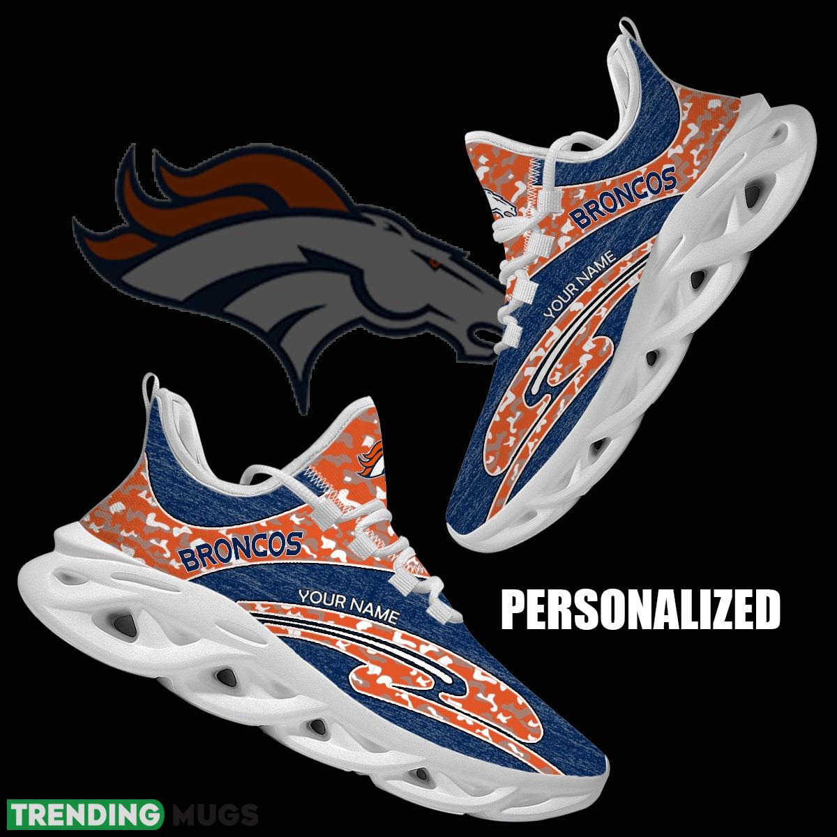 Elevate your street style with our Personalized Camo Design NFL Denver Broncos Max Soul Shoes Streetstyle Chunky Sneaker. Show off your love for the Denver Broncos with these eye-catching sneakers featuring a unique camo design. With a comfortable chunky sole and personalized details, these shoes are sure to turn heads wherever you go. Step up your shoe game and represent your favorite NFL team in style with these one-of-a-kind sneakers.