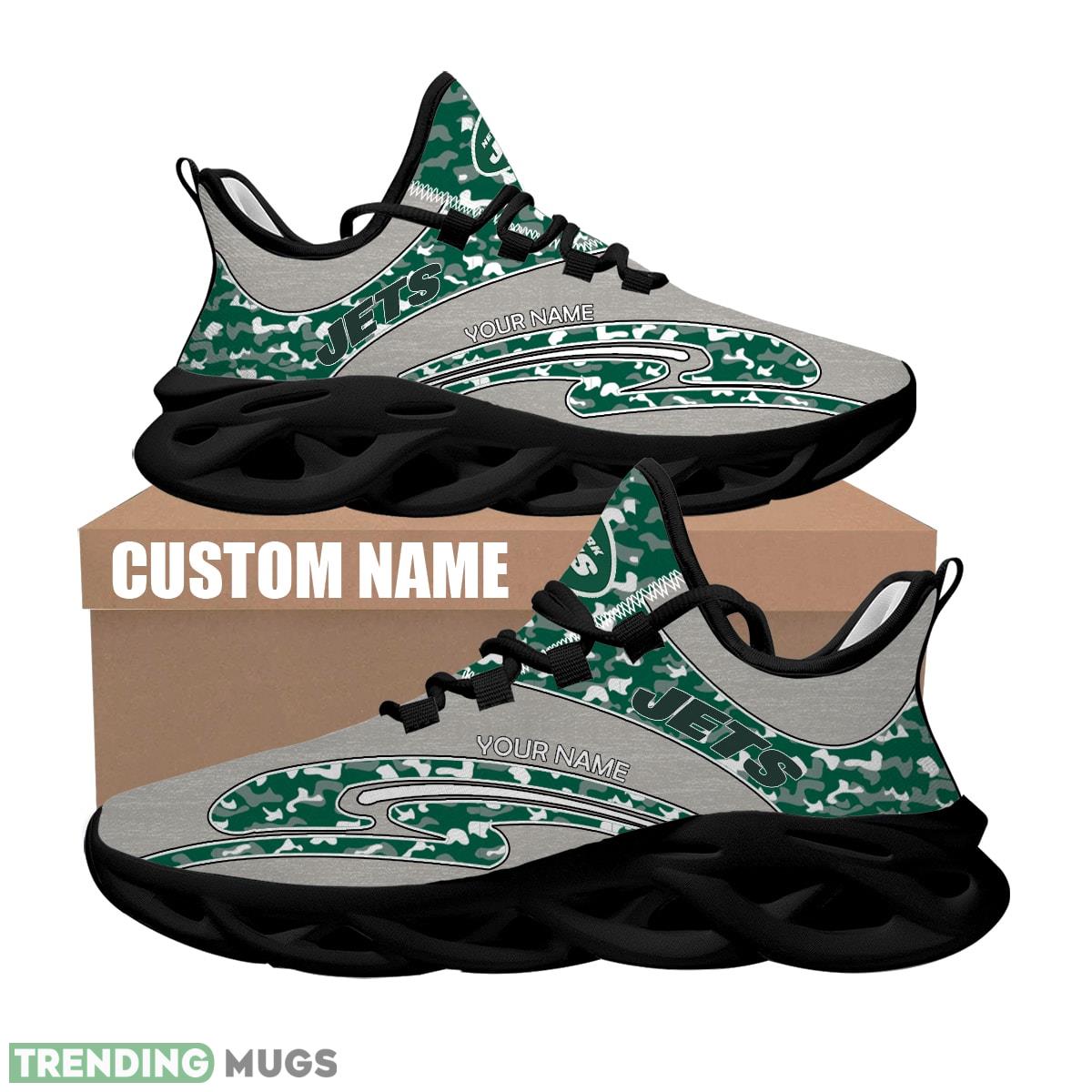 Elevate your game day style with our Personalized Camo Design NFL New York Jets Max Soul Shoes Craftsmanship Chunky Sneaker. Show off your team pride in a unique way with these custom sneakers featuring a bold camo design and the iconic New York Jets logo. Perfect for game days, tailgates, or just running errands, these sneakers are as comfortable as they are stylish. Stand out from the crowd and represent your favorite team in style with these one-of-a-kind shoes. Gear up and step out in the ultimate fan footwear!