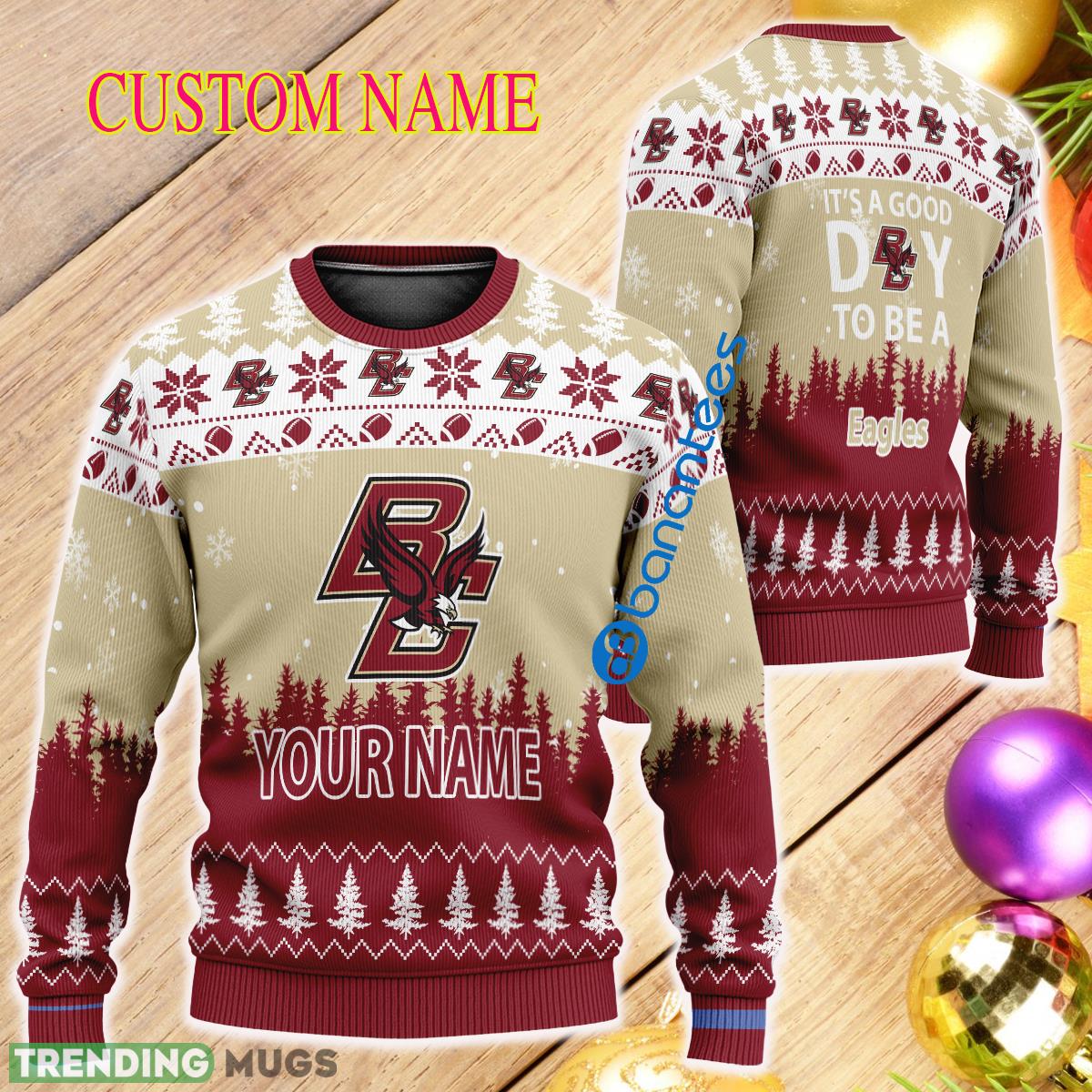 Get ready to show off your Boston College Eagles pride in style with our Personalized It A Good Day To Be A Boston College Eagles Knitted Christmas 3D Sweater! This eye-catching and festive sweater is the perfect way to stand out from the crowd during the holiday season.