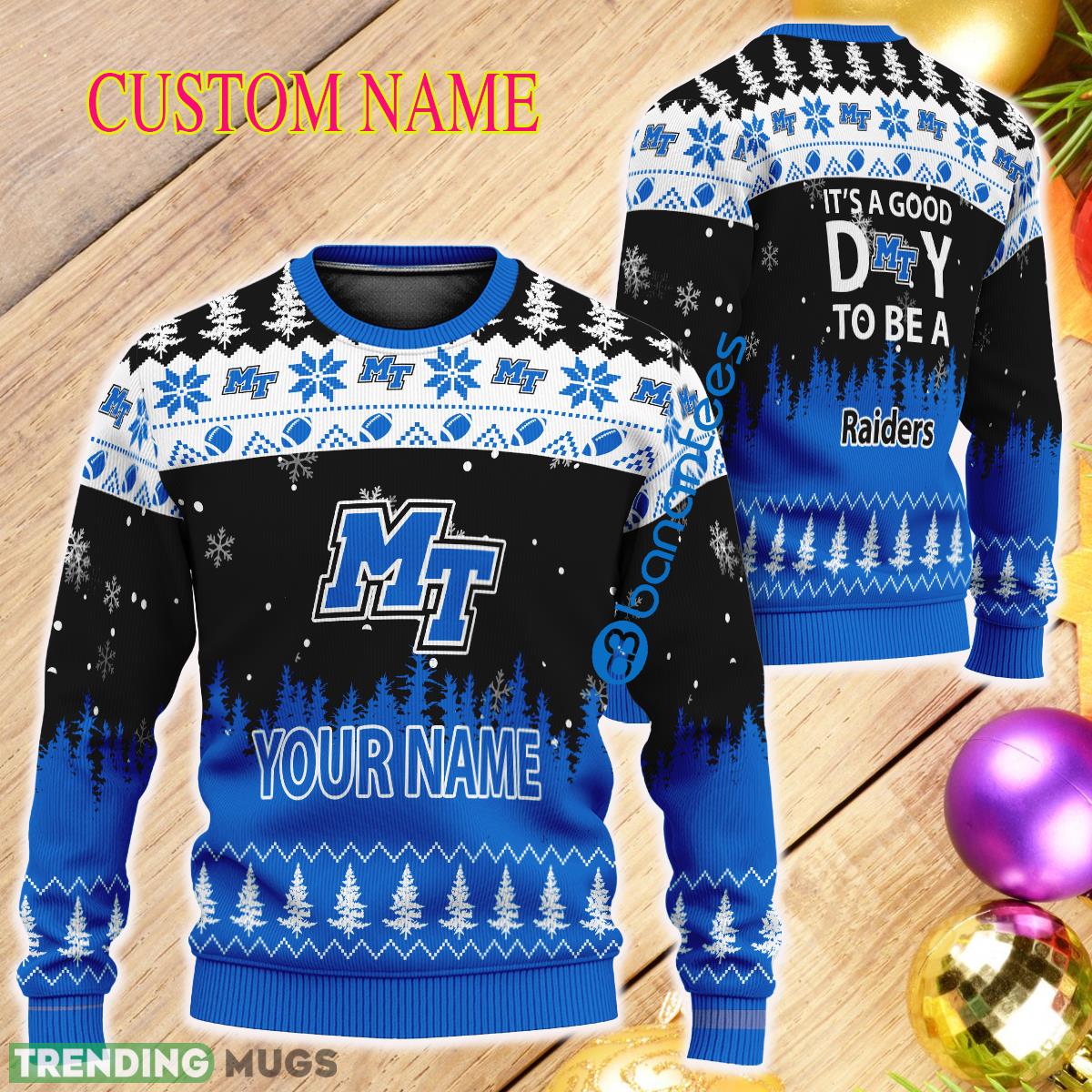 Personalized It A Good Day To Be A Middle Tenn Blue Raiders Ugly Xmas 3D Sweater Informations: