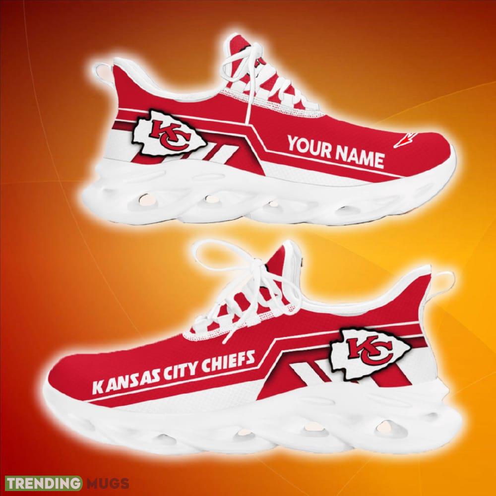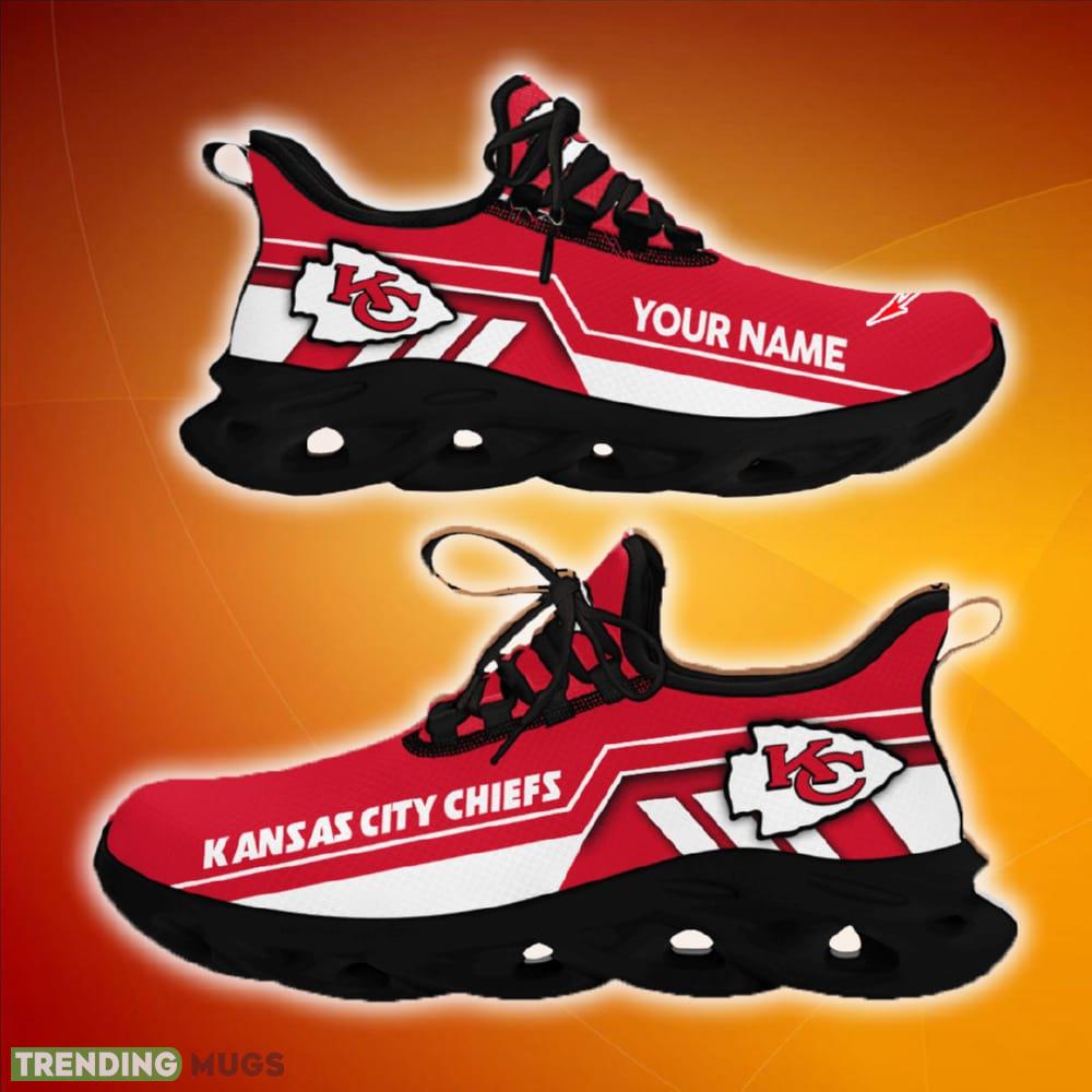 This Personalized Kansas City Chiefs Custom Max Soul Shoes Propel Gift For Men Women Running Sneakers is a breathable, lightweight, and comfortable casual outdoor shoe that has a unique design. It is made of a mesh fabric which makes it sweat absorbent and breathable, while the rubber bottom ensures traction, comfort, and durability. It is available in two colors: black or white sole. There are two styles of shoelace holes so you can choose your preference.