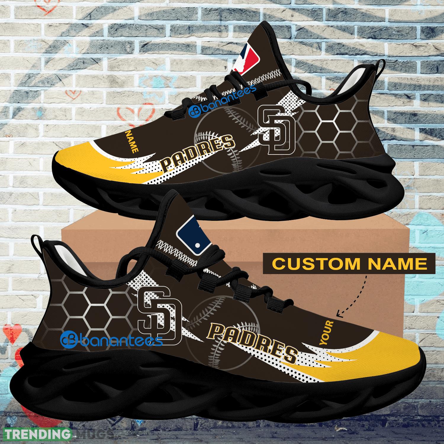Personalized MLB San Diego Padres Hexagonal Pattern Max Soul Shoes New Gift Sports Sneakers information: