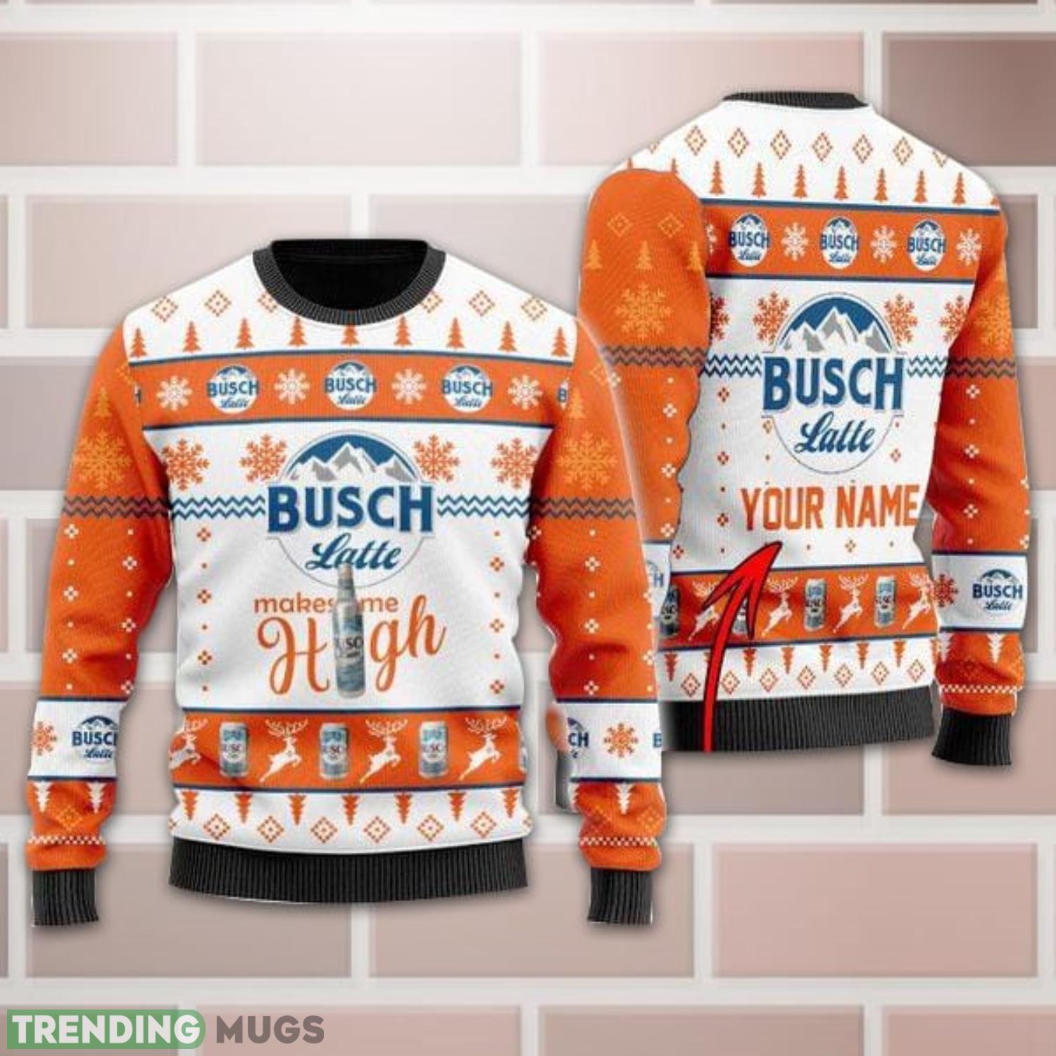 Whether you’re attending an ugly sweater party or simply want to show off your love for Busch Latte, our Personalized Name Busch Latte Makes Me High Christmas Gift Sweater is the ultimate statement piece. Embrace the holiday spirit with this eye-catching sweater and let the festivities begin!
