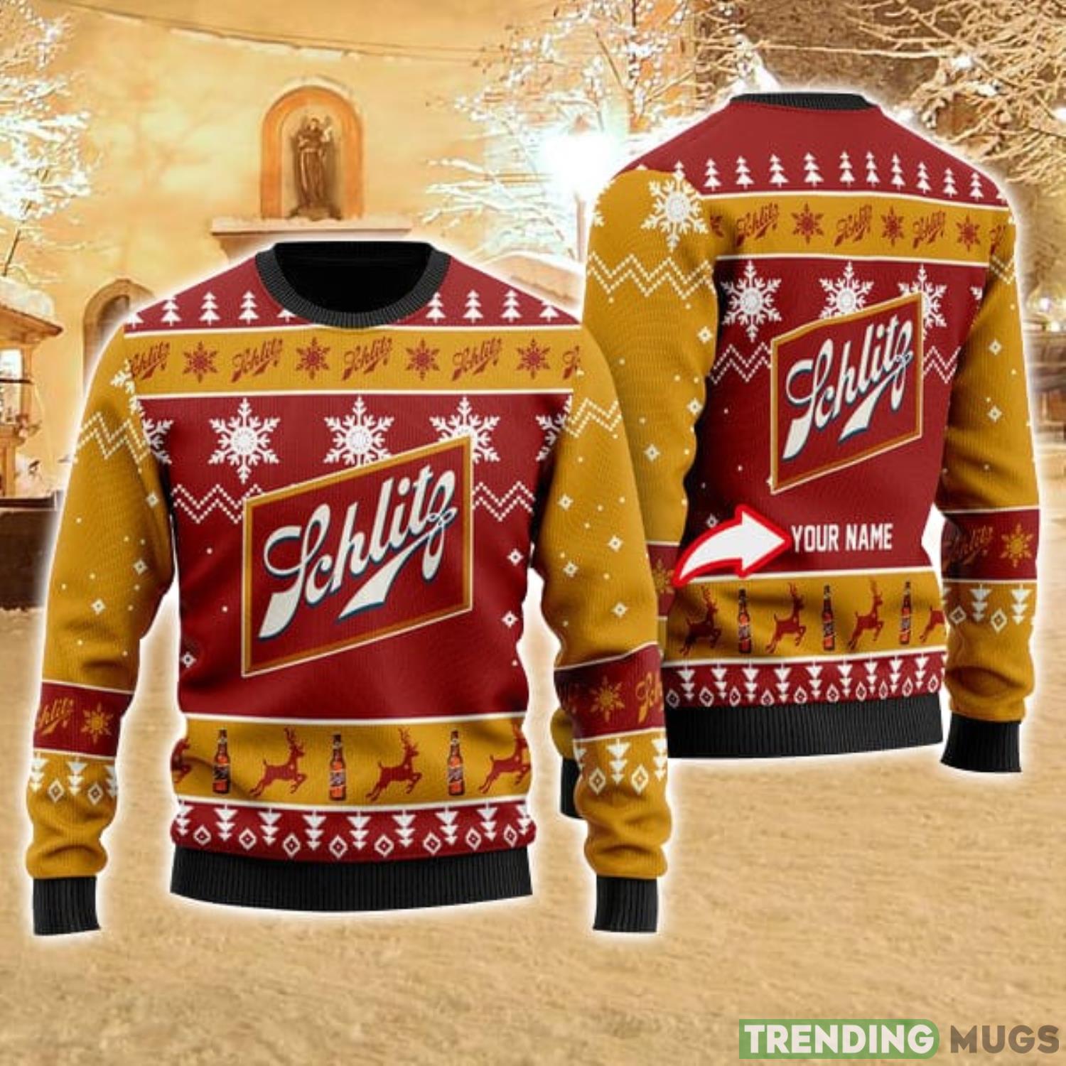 So why wait? Embrace the festive spirit and bring some laughter to your holiday celebrations with our Personalized Name Funny Schlitz Beer 3D Ugly Christmas Sweater. Order now and make this Christmas truly unforgettable!