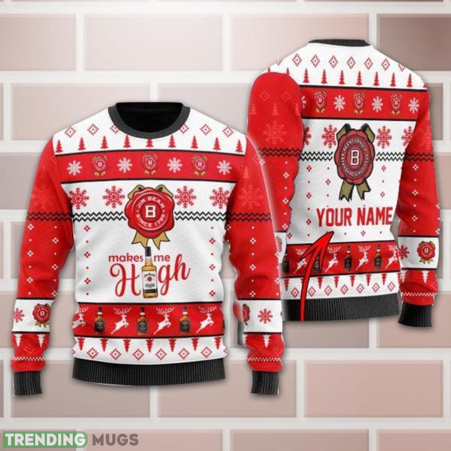 Personalized Name Jim Beam Makes Me High Christmas Gift Sweater All Over Print 3D Sweater Informations: