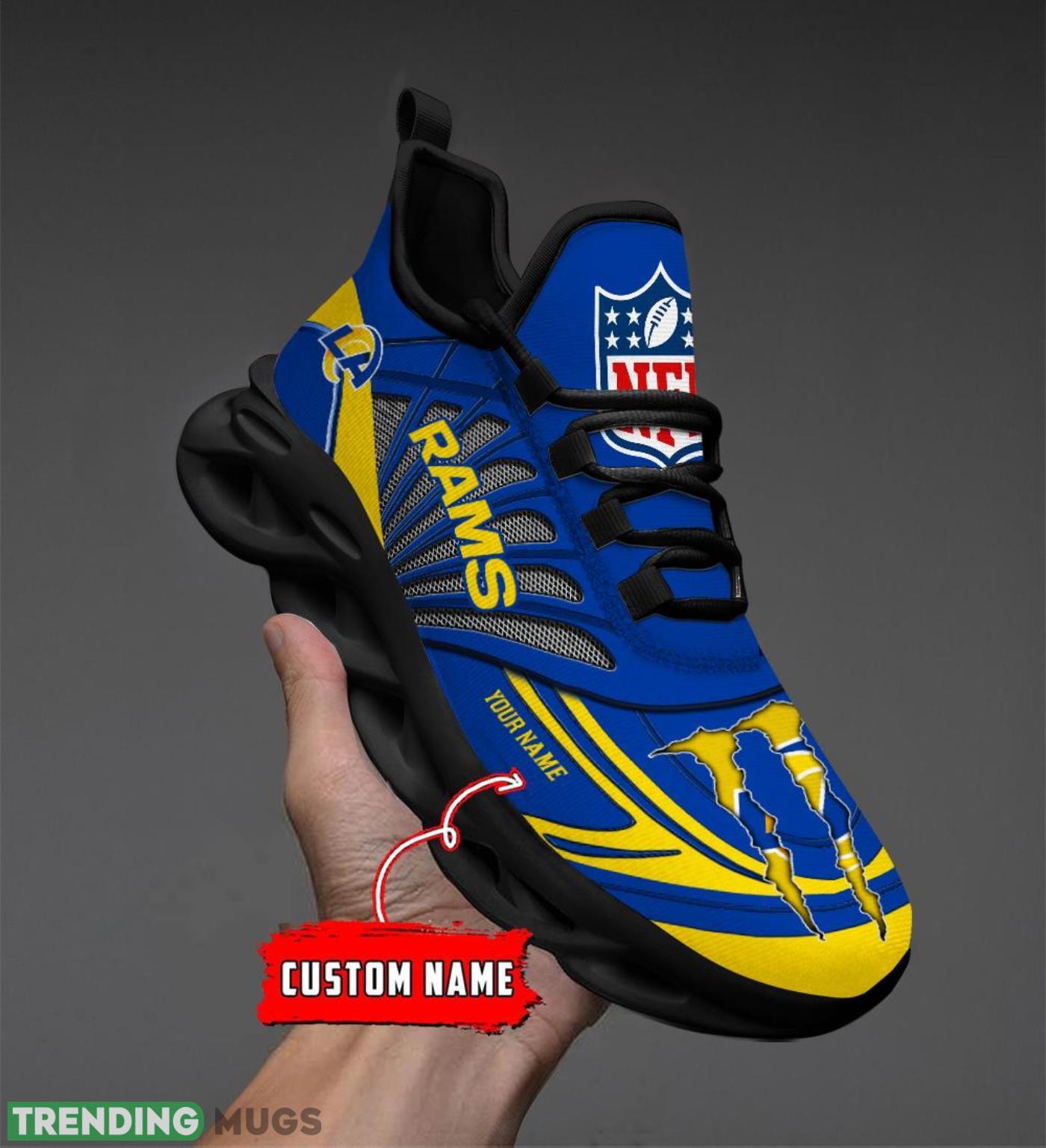 Step up your game with these Personalized Name Los Angeles Rams Personalized Running Sneakers Max Soul Shoes! Designed for true Rams fans like you, these sneakers are the perfect way to show off your team spirit while staying active.
