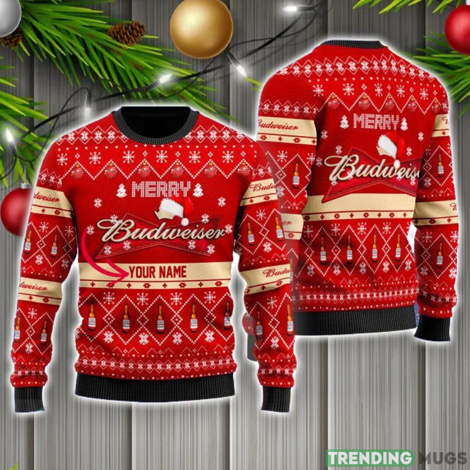 Personalized Name Merry Budweiser Beer Ugly Christmas Sweater Christmas Gift Ideas Informations: