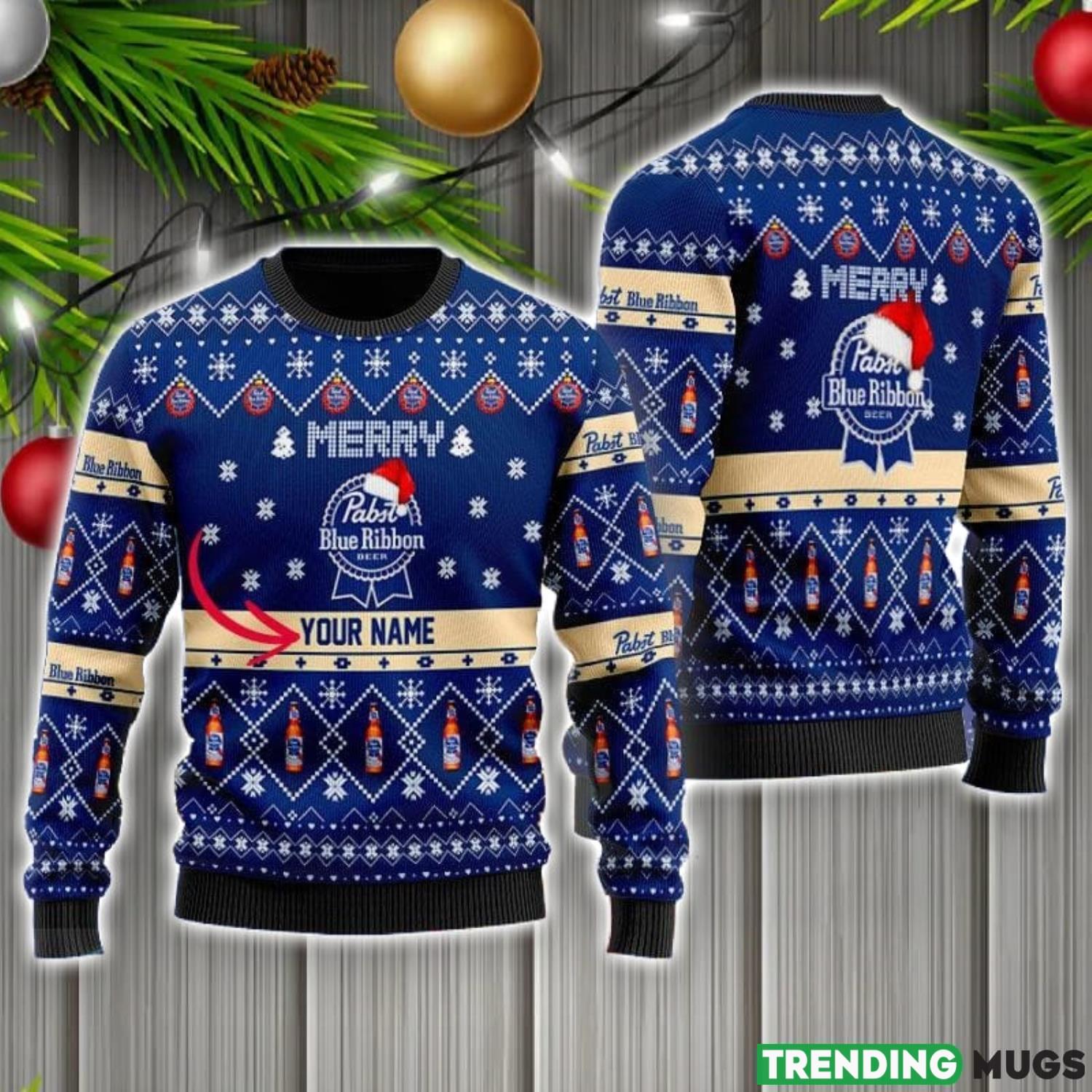 Personalized Name Merry Pabst Blue Ribbon Ugly Christmas Sweater Christmas Gift Ideas Informations: