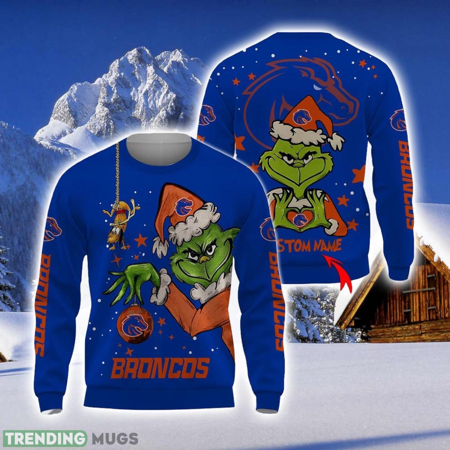 Personalized Name NCAA Boise State Broncos Football Fans Sweater Grinch Ugly Sweater Christmas Xmas Gift Product Photo 1