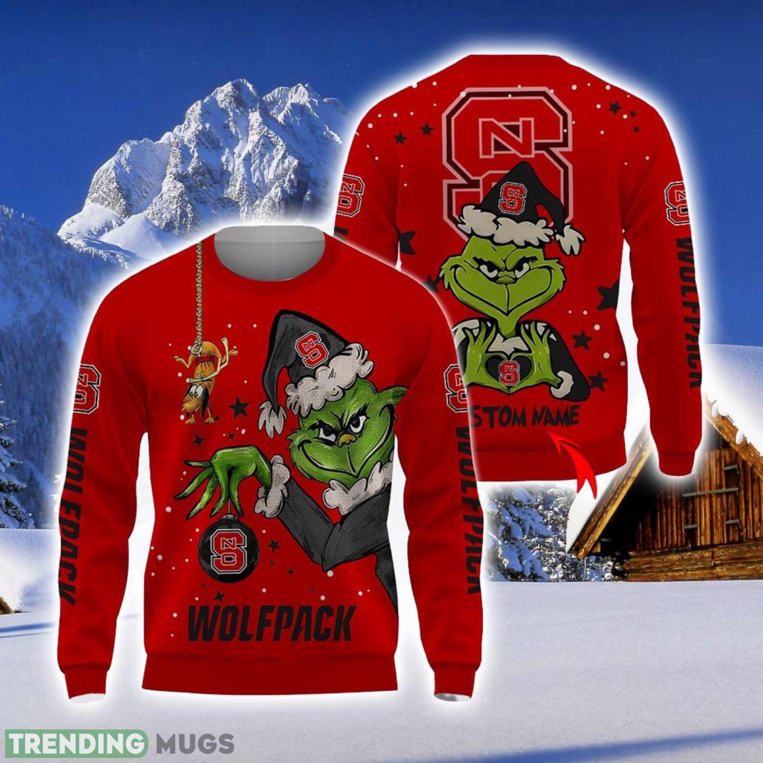 Personalized Name NCAA NC State Wolfpack Football Fans Sweater Grinch Ugly Sweater Christmas Xmas Gift 3D Sweater