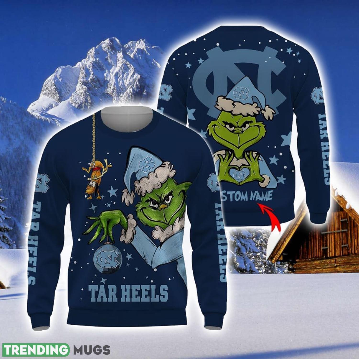 Personalized Name NCAA North Carolina Tar Heels Football Fans Sweater Grinch Ugly Sweater Christmas Xmas Gift