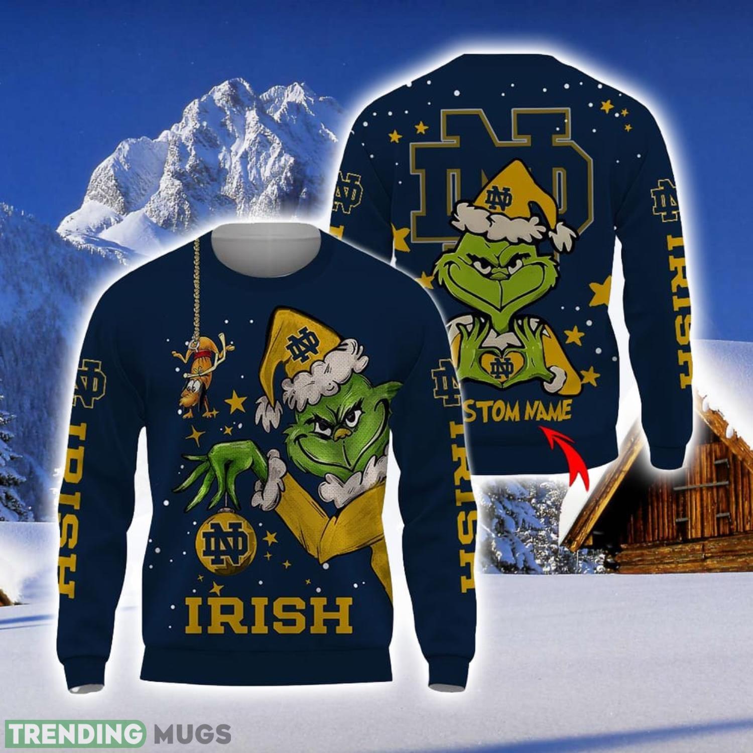 Personalized Name NCAA Notre Dame Fighting Irish Football Fans Sweater Grinch Ugly Sweater Christmas Xmas Gift 3D Sweater