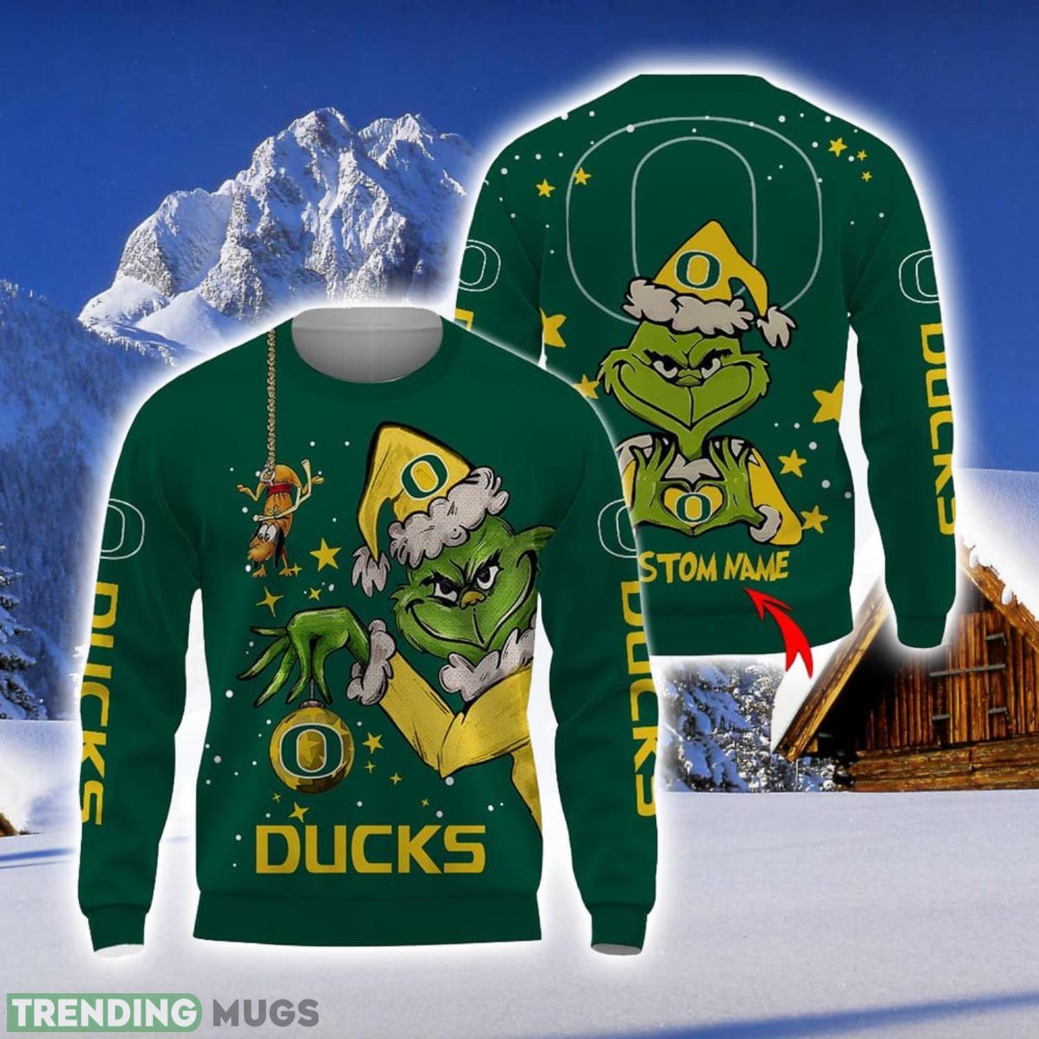 Personalized Name NCAA Oregon Ducks Football Fans Sweater Grinch Ugly Sweater Christmas Xmas Gift Product Photo 1