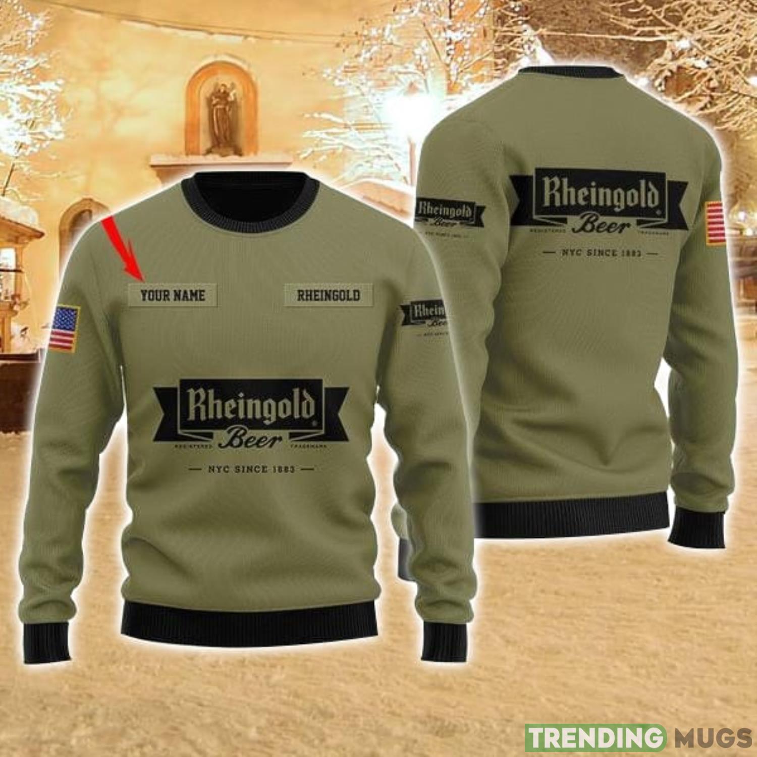 Personalized Name Rheingold Flag Military Green 3D Ugly Christmas Sweater Christmas Gift Ideas Family Gift Informations: