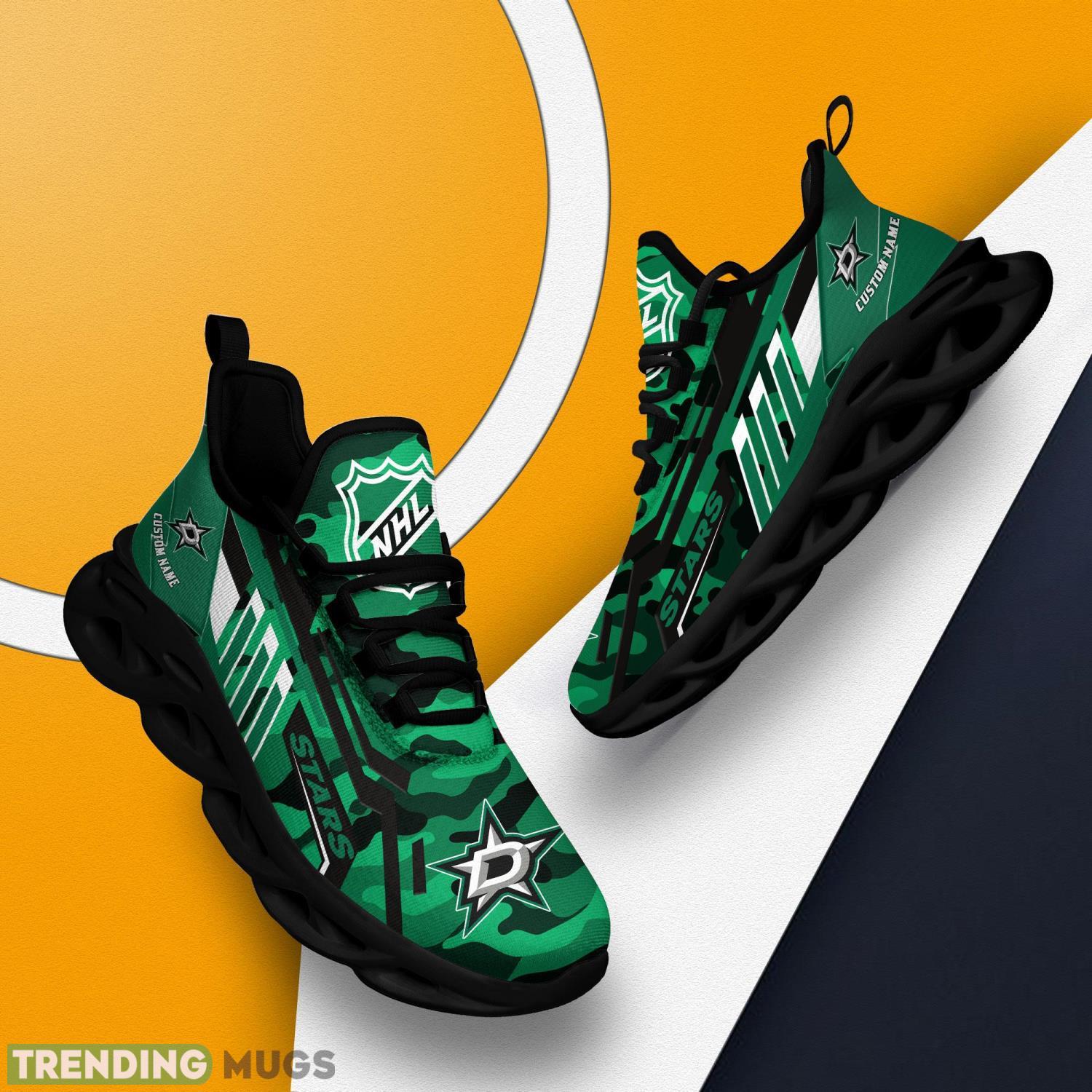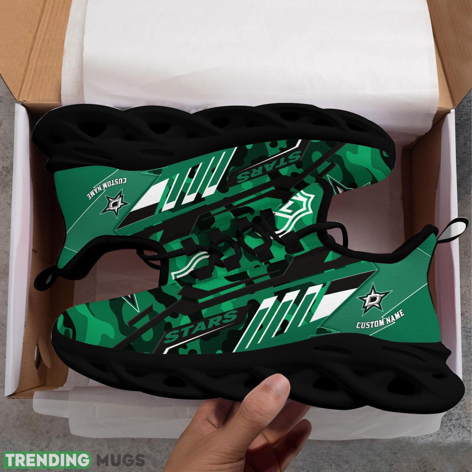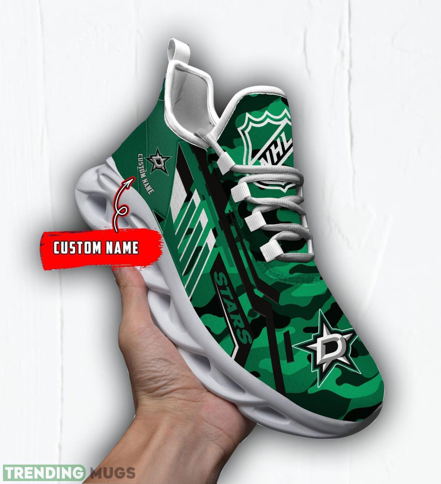 Get ready to show off your team spirit with our Personalized Name Shoes Dallas Stars Camo Pattern Max Soul Shoes Running Sneakers! These stylish and comfortable sneakers are designed for true fans like you, who want to stand out from the crowd.