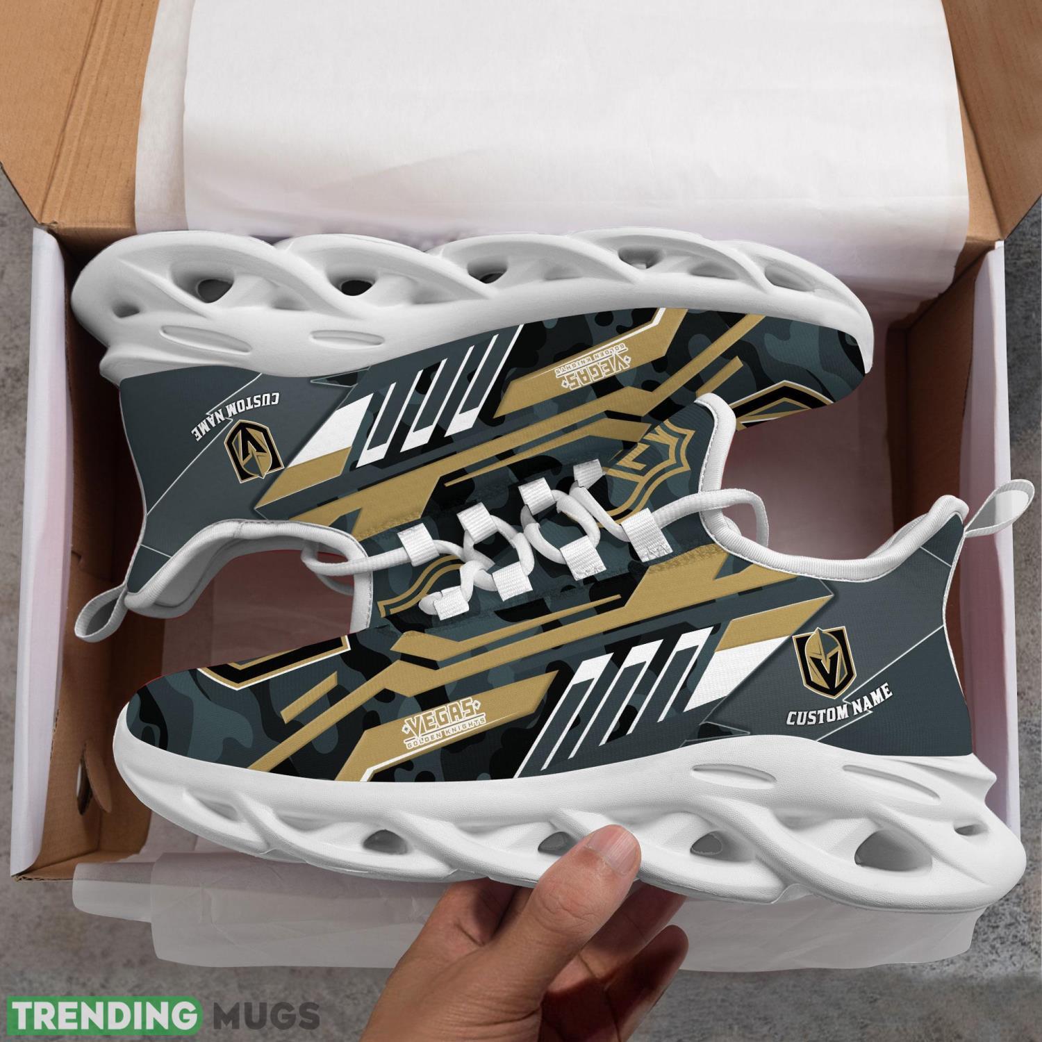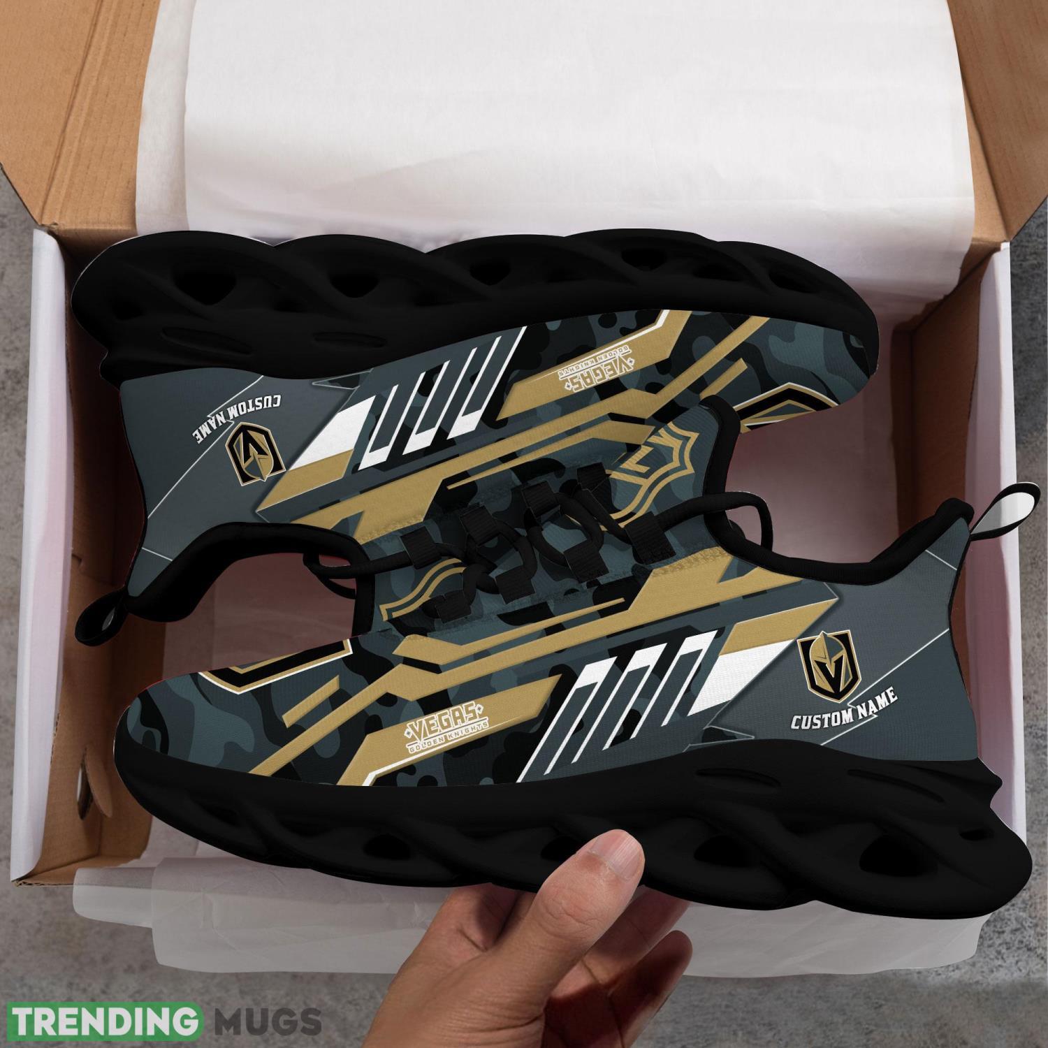 Don’t miss out on the opportunity to own these Personalized Name Shoes Vegas Golden Knights Camo Pattern Max Soul Shoes Running Sneakers. Order yours today and step up your fashion game while representing your favorite team with pride!