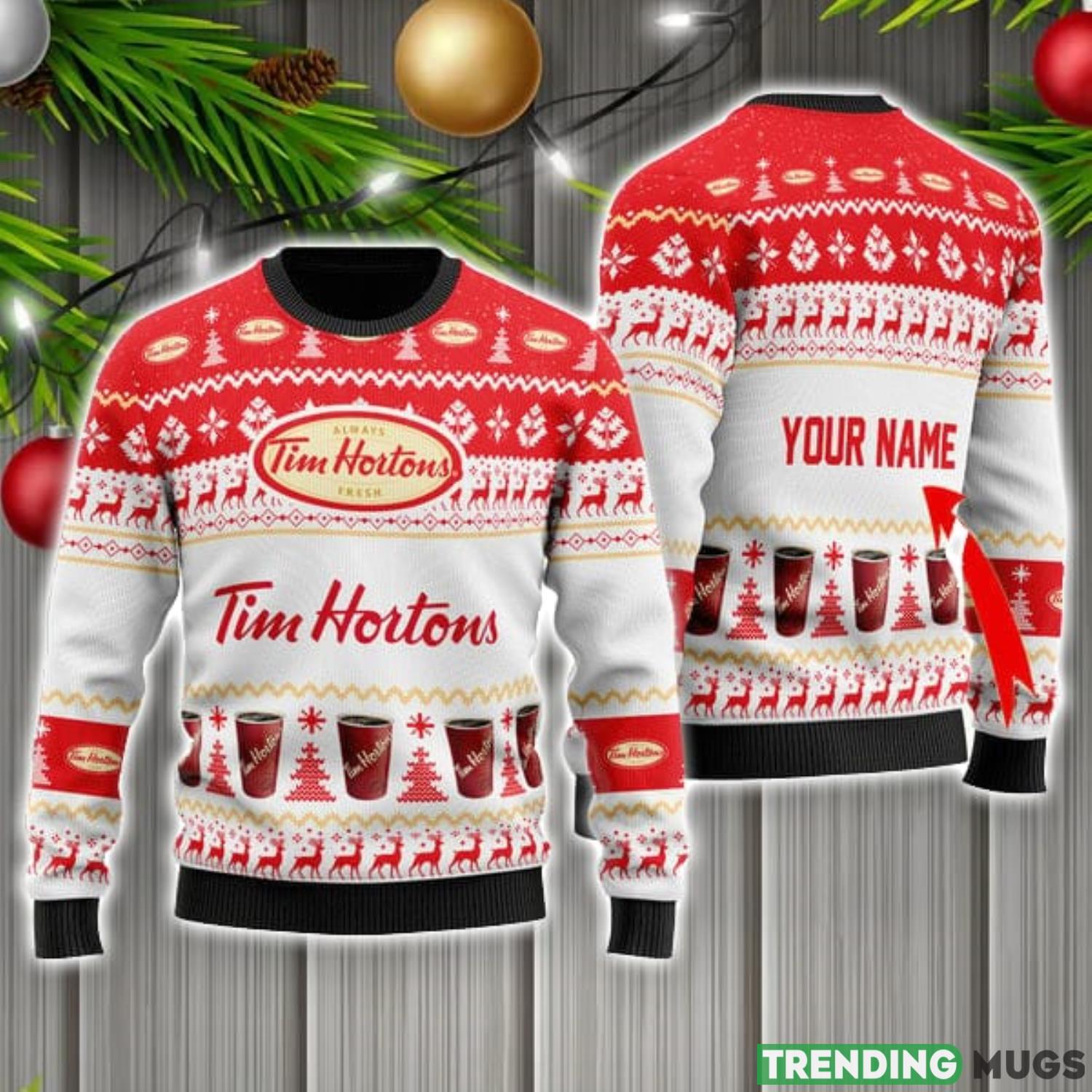 Personalized Name Tim Hortons Cute Gift Ugly Christmas Sweater Christmas Gift Ideas Informations: