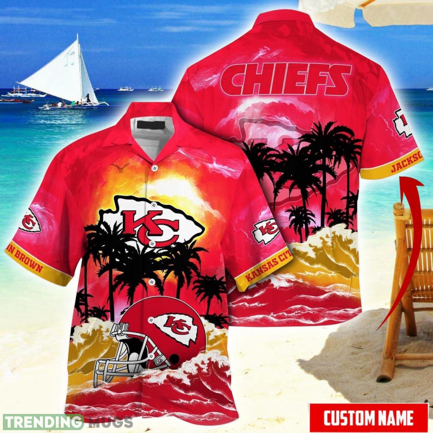 What sets this Hawaiian shirt apart is the ability to personalize it with your name, making it truly one-of-a-kind. Stand out from the crowd and proudly display your love for the Kansas City Chiefs with this unique and eye-catching shirt. Whether you’re tailgating, attending a game, or simply enjoying a summer day, this shirt is the perfect choice.
