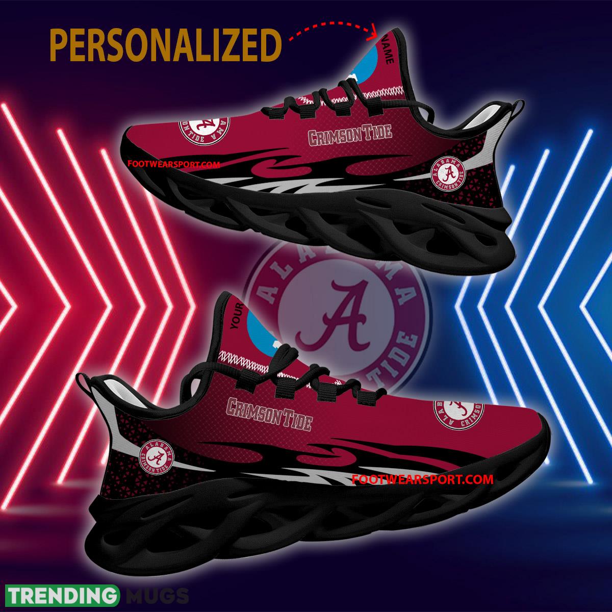 Personalized NCAA Alabama Crimson Tide Max Soul Shoes New Design Graphic Running Sneaker information: