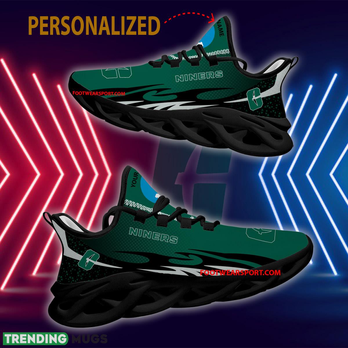 Elevate your game day style with our Personalized NCAA Charlotte 49ers Max Soul Shoes! These new design chunky sneakers are the perfect way to show off your team pride in a unique and fashionable way. With a personalized touch, you can make these shoes truly your own. Whether you’re cheering on the 49ers from the stands or hitting the streets, these sneakers will keep you looking and feeling your best. Don’t miss out on this must-have addition to your game day wardrobe!