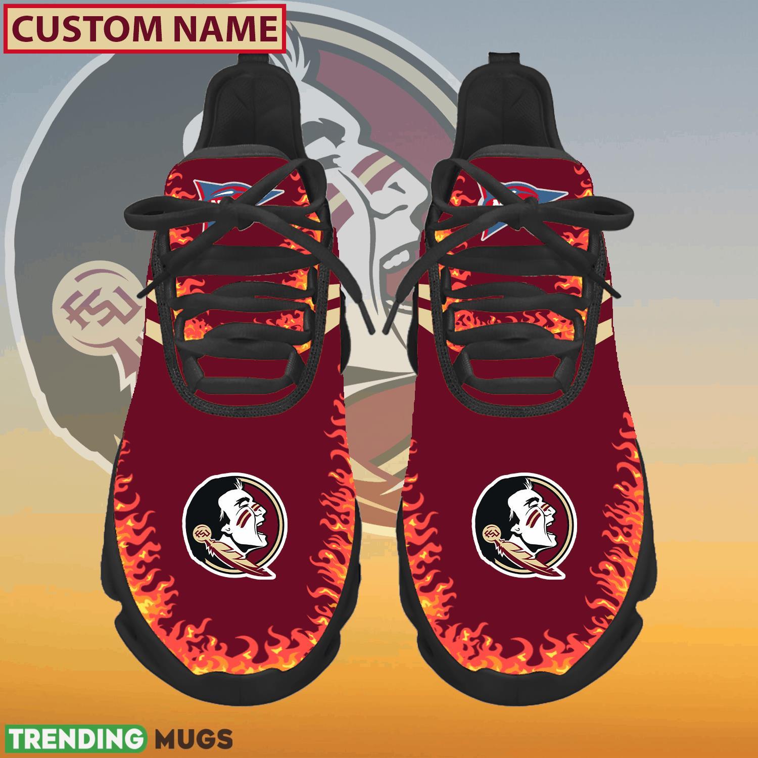 This Personalized NCAA Florida State Seminoles Logo New Style Max Soul Shoes For Men And Women is a breathable, lightweight, and comfortable casual outdoor shoe that has a unique design. It is made of a mesh fabric which makes it sweat absorbent and breathable, while the rubber bottom ensures traction, comfort, and durability. It is available in two colors: black or white sole. There are two styles of shoelace holes so you can choose your preference.