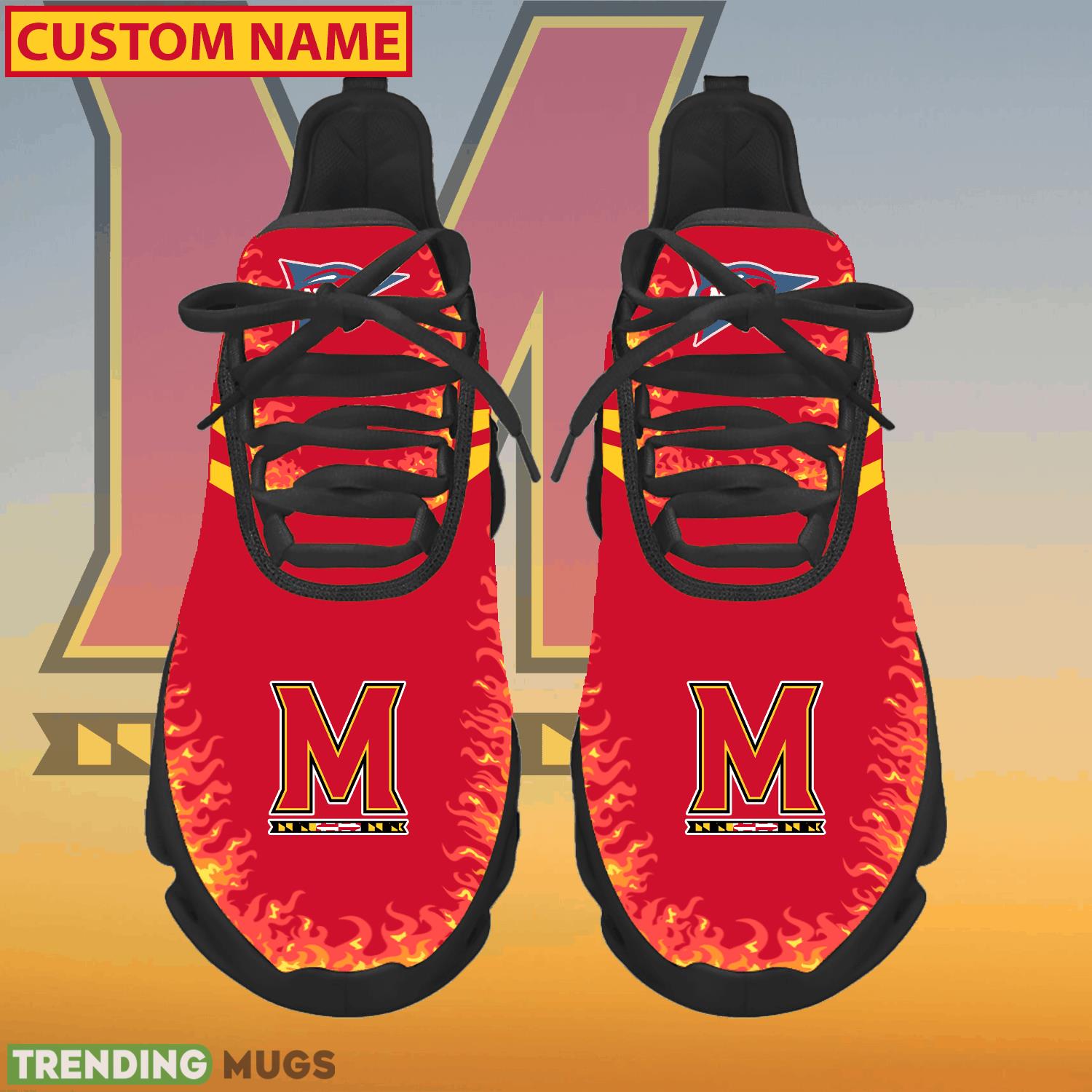 This Personalized NCAA Maryland Terrapins Logo New Style Max Soul Shoes For Men And Women is a breathable, lightweight, and comfortable casual outdoor shoe that has a unique design. It is made of a mesh fabric which makes it sweat absorbent and breathable, while the rubber bottom ensures traction, comfort, and durability. It is available in two colors: black or white sole. There are two styles of shoelace holes so you can choose your preference.