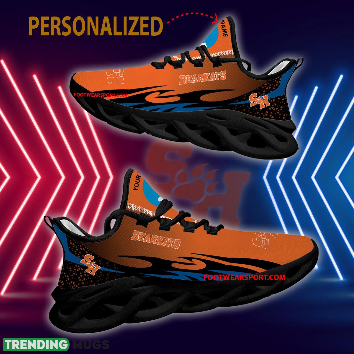 Step out in style and show off your team pride with our Personalized NCAA Sam Houston Bearkats Max Soul Shoes! These new design recognition chunky sneakers are not only fashionable but also comfortable, making them the perfect addition to any Bearkats fan’s wardrobe. Stand out from the crowd and represent your favorite team with these eye-catching shoes. Whether you’re heading to a game or just running errands around town, these sneakers are sure to turn heads and make a statement. Upgrade your shoe game today with our personalized NCAA Sam Houston Bearkats Max Soul Shoes!