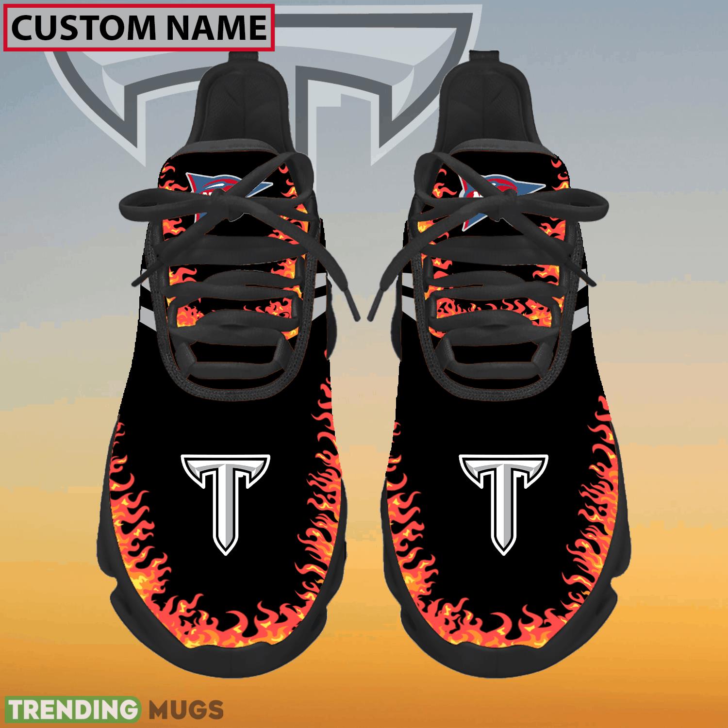 This Personalized NCAA Troy Trojans Logo New Style Max Soul Shoes For Men And Women is a breathable, lightweight, and comfortable casual outdoor shoe that has a unique design. It is made of a mesh fabric which makes it sweat absorbent and breathable, while the rubber bottom ensures traction, comfort, and durability. It is available in two colors: black or white sole. There are two styles of shoelace holes so you can choose your preference.