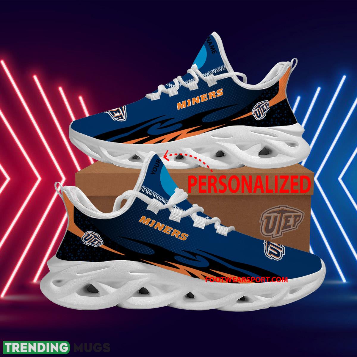 Elevate your game day style with our Personalized NCAA UTEP Miners Max Soul Shoes! Step out in bold fashion with the new design Aspire Chunky Sneaker, featuring the iconic UTEP Miners logo personalized just for you. These eye-catching shoes are perfect for showing off your team spirit while staying comfortable all day long. Make a statement on campus or at the big game with these must-have kicks. Upgrade your shoe game and support your favorite team in style with our NCAA UTEP Miners Max Soul Shoes!
