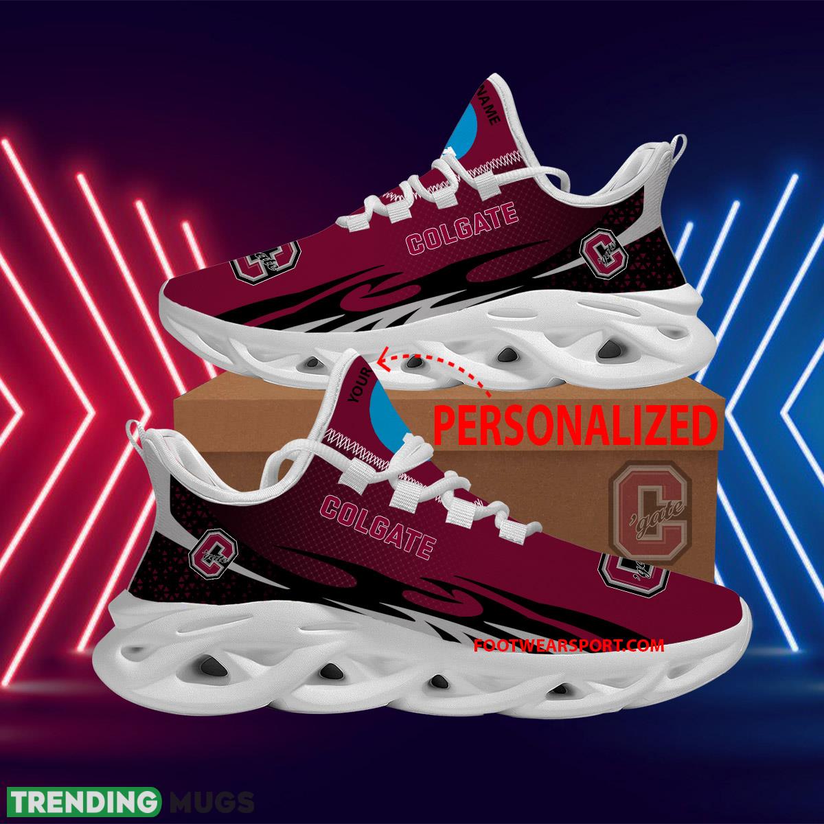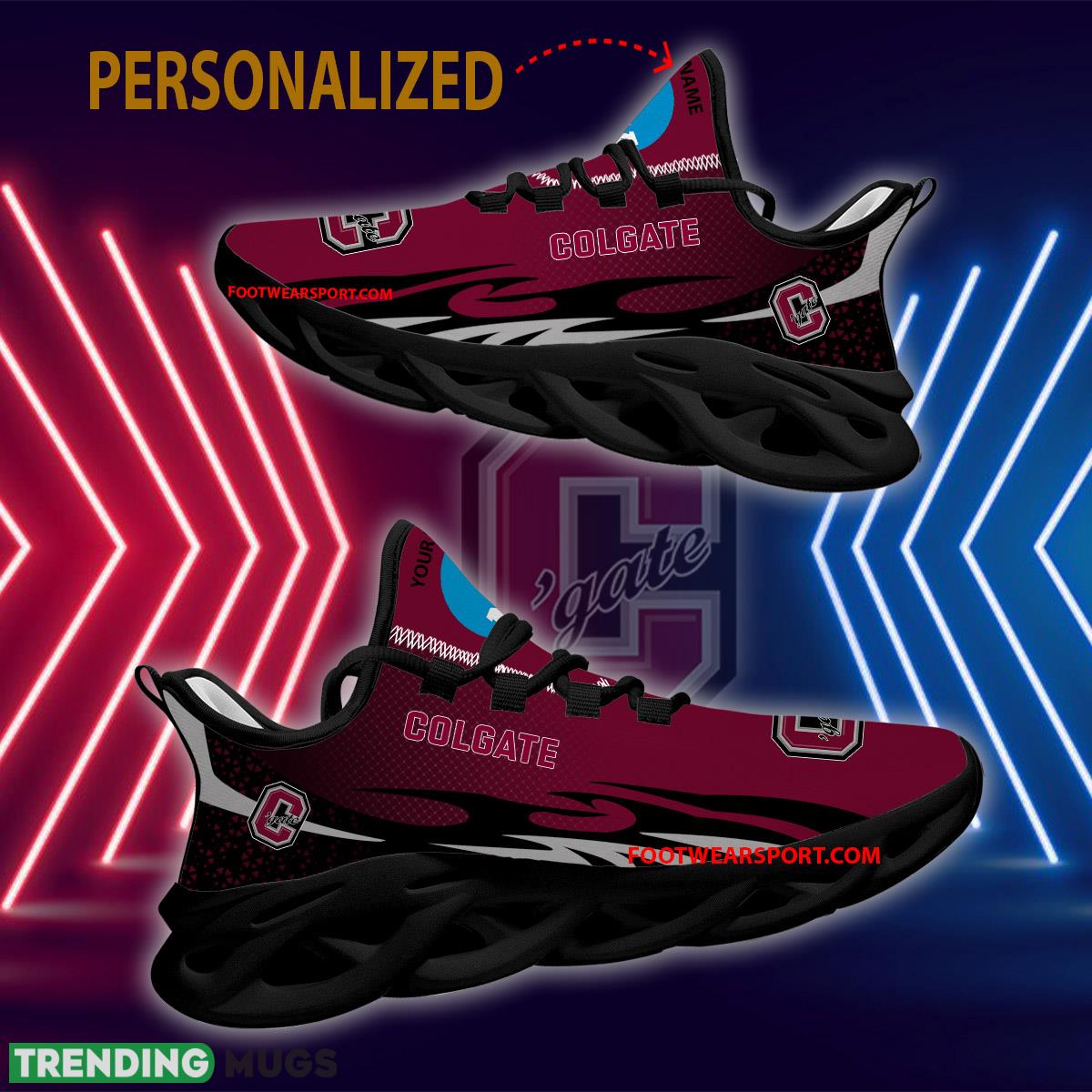 Elevate your sneaker game with our Personalized NCAA2 Colgate Raiders Max Soul Shoes. These new design streetstyle chunky sneakers are the perfect blend of style and comfort. Stand out from the crowd with these unique kicks featuring the iconic Colgate Raiders logo. Whether you’re hitting the streets or cheering on your favorite team, these sneakers are sure to make a statement. Step up your shoe game and rock the latest trend with our Colgate Raiders Max Soul Shoes.