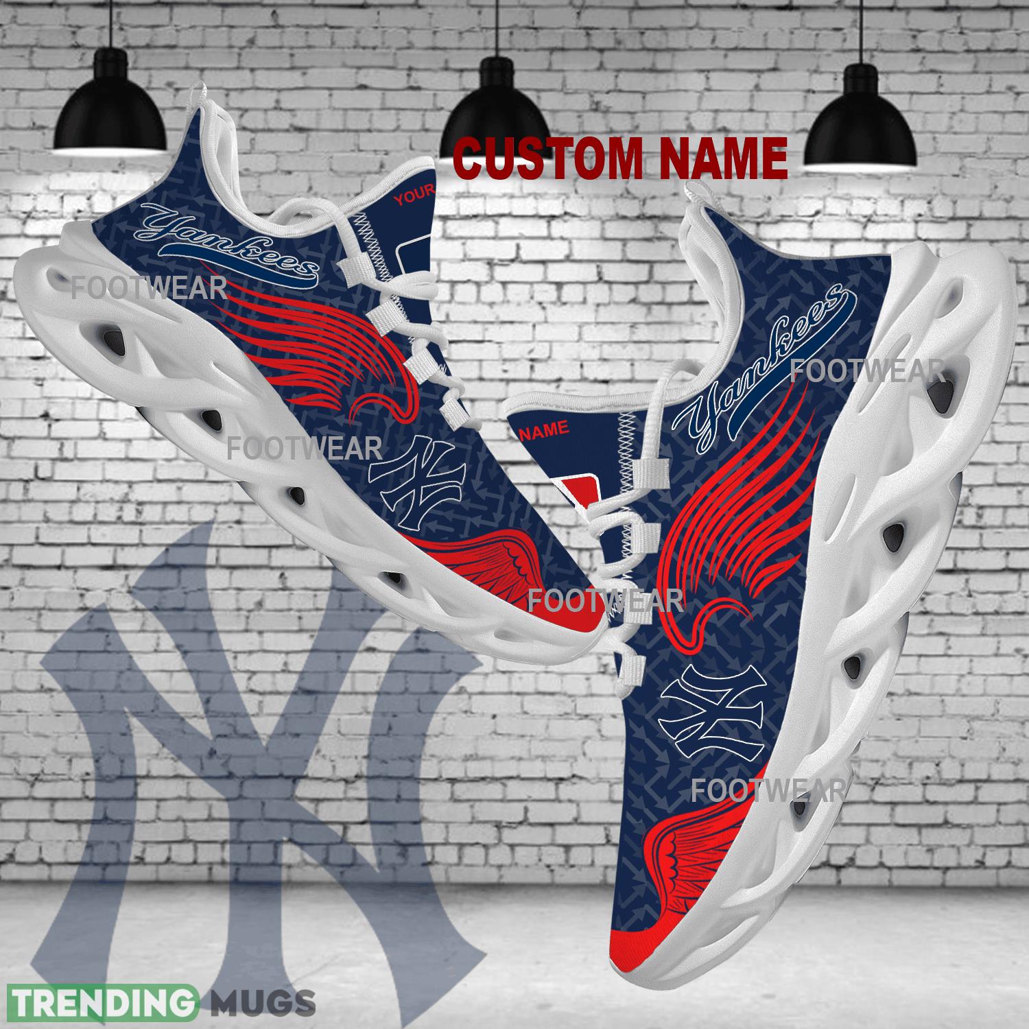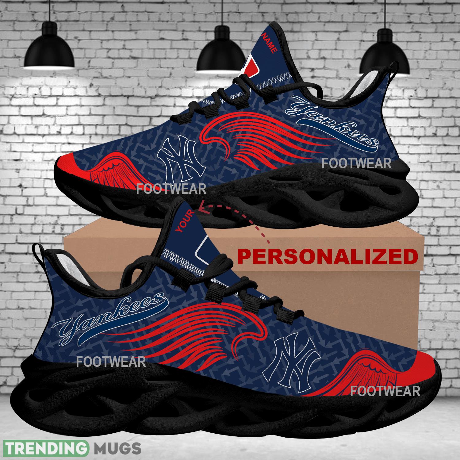 Elevate your sneaker game with our Personalized New York Yankees New Wings Arrow Pattern Max Soul Shoes Running Sneaker Emblematic. These shoes are not only stylish, but also comfortable and durable for all your running needs. Show off your love for the New York Yankees with the emblematic design, personalized just for you. Step up your style and performance with these one-of-a-kind sneakers.