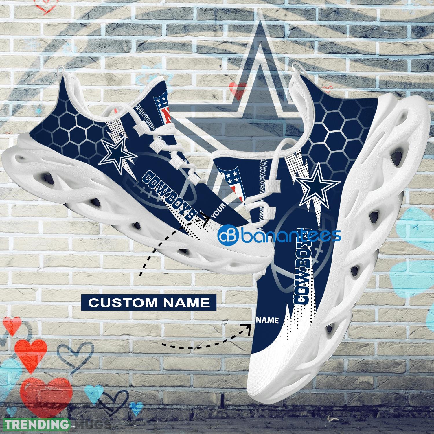 Don’t miss out on the opportunity to elevate your game-day look with these Personalized NFL Dallas Cowboys Hexagonal Pattern Max Soul Shoes. Order yours today and step into a world of comfort, style, and unwavering team loyalty.