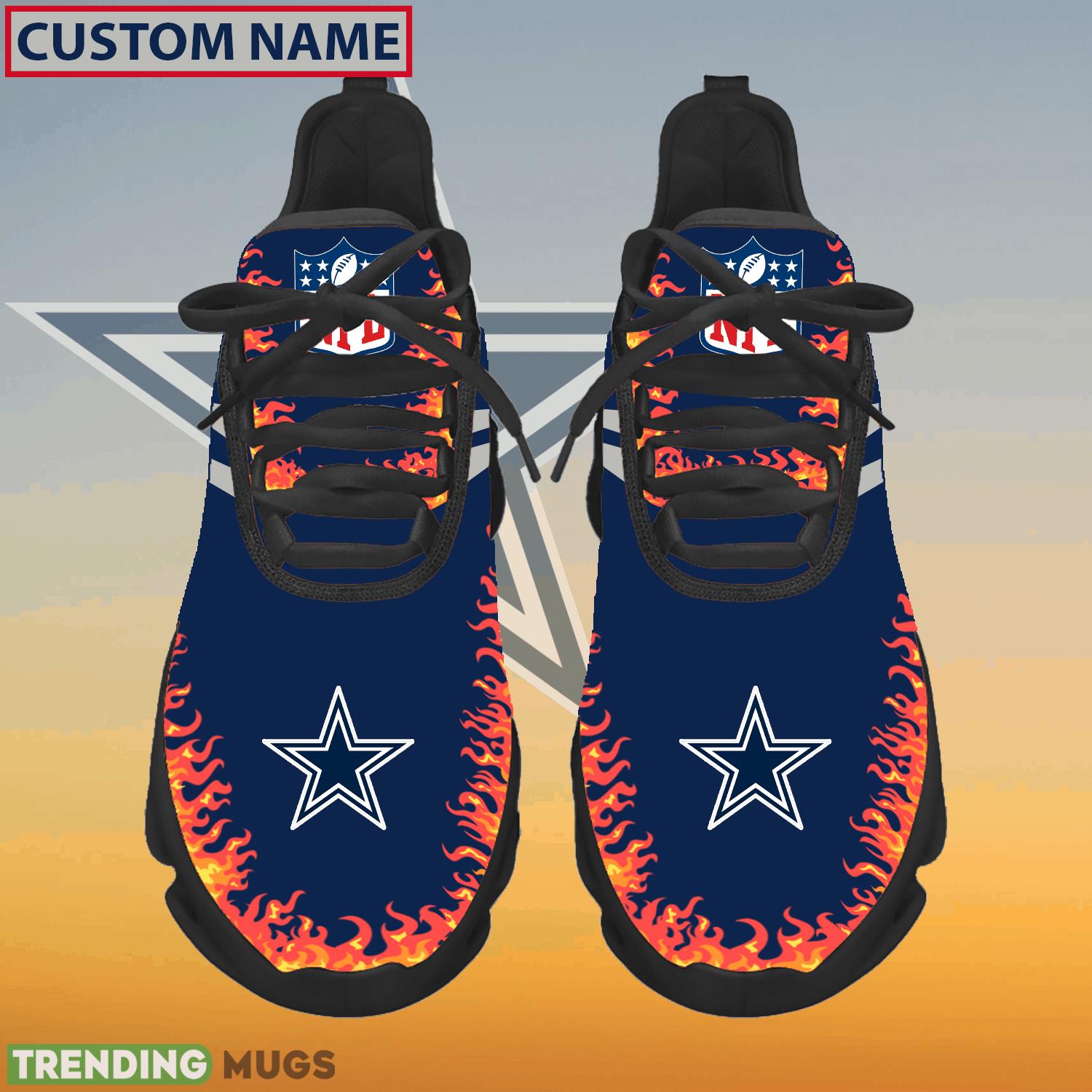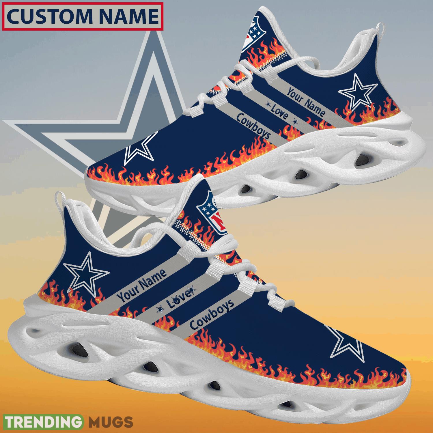 Don’t miss out on the opportunity to showcase your Cowboys pride in a unique way. Order your Personalized NFL Dallas Cowboys Logo New Style Max Soul Shoes For Fans today and step up your fan game!