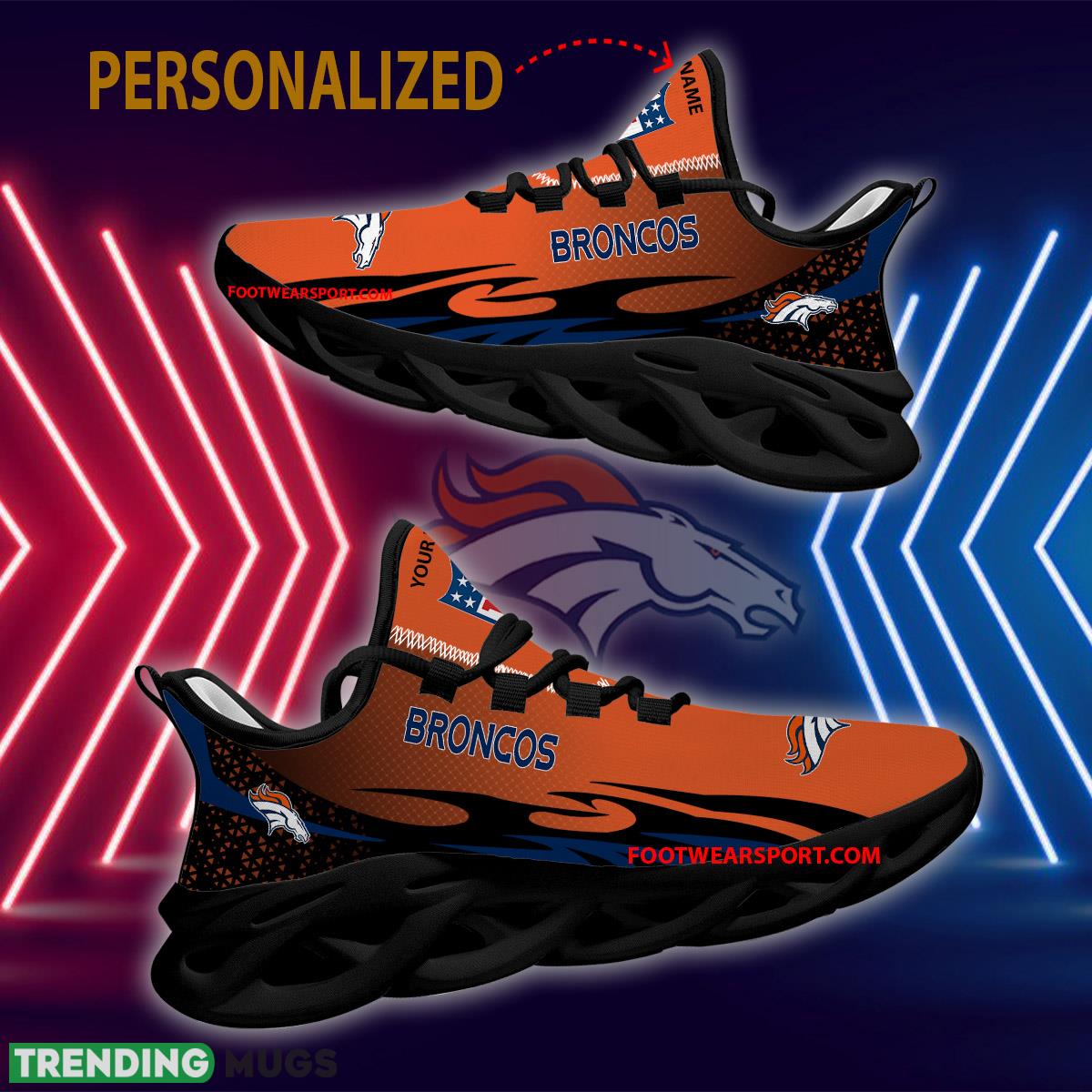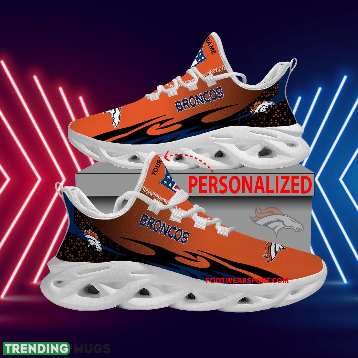 Elevate your game day style with our Personalized NFL Denver Broncos Max Soul Shoes. These new design Urbanite Sport Sneakers combine comfort and team spirit in one sleek package. Show off your love for the Broncos with these custom kicks featuring the iconic team logo and colors. Whether you’re heading to the stadium or hitting the streets, these shoes will make you stand out from the crowd. Step up your shoe game with the Personalized NFL Denver Broncos Max Soul Shoes!