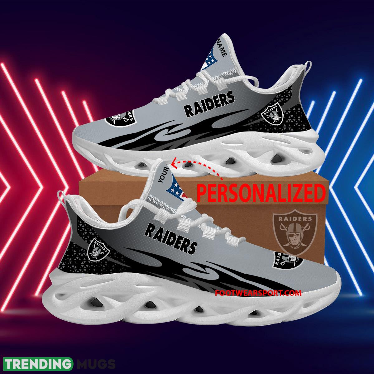 Elevate your game day style with our Personalized NFL Las Vegas Raiders Max Soul Shoes from our New Design Collection. These Chunky Sneakers offer the perfect combination of comfort and team spirit, making them a must-have for any die-hard Raiders fan. Stand out from the crowd with these unique and eye-catching shoes that are sure to turn heads wherever you go. Whether you’re heading to the stadium or just running errands around town, these sneakers will keep you looking stylish and feeling supported all day long. Show off your team pride in a whole new way with our exclusive Max Soul Shoes. Order yours today and step up your Raiders fandom!