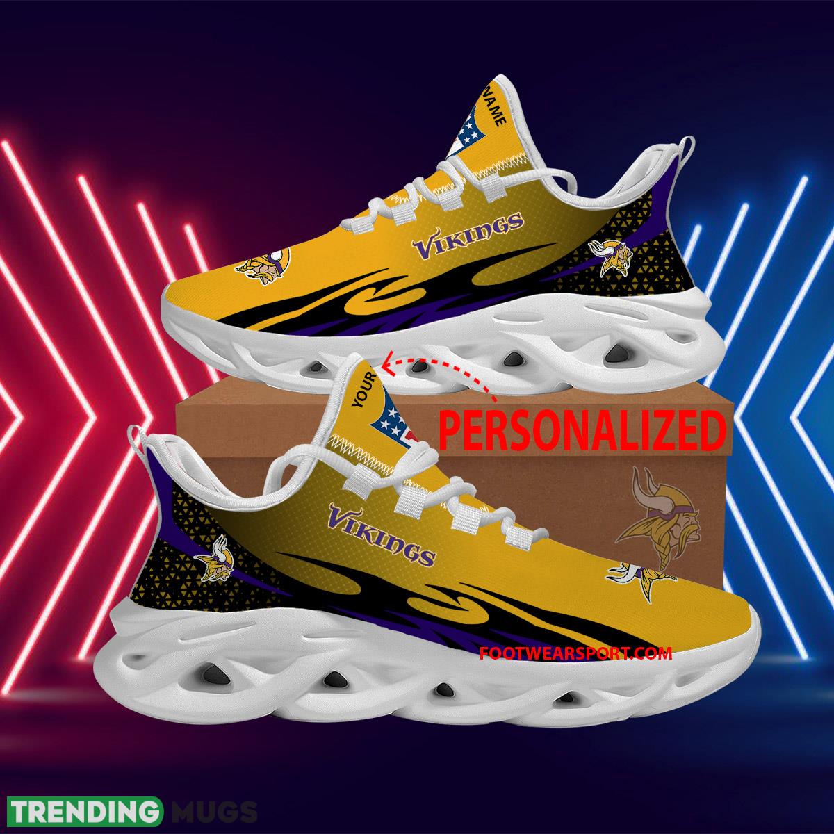 Elevate your game day style with our Personalized NFL Minnesota Vikings Max Soul Shoes! These sleek and stylish sneakers feature a new design that will have you standing out on the runway or while running errands. The vibrant Minnesota Vikings colors and logo make these shoes a must-have for any die-hard fan. Plus, the personalized touch adds a unique flair that sets them apart from the rest. Step up your shoe game and show off your team pride with these exclusive sneakers.