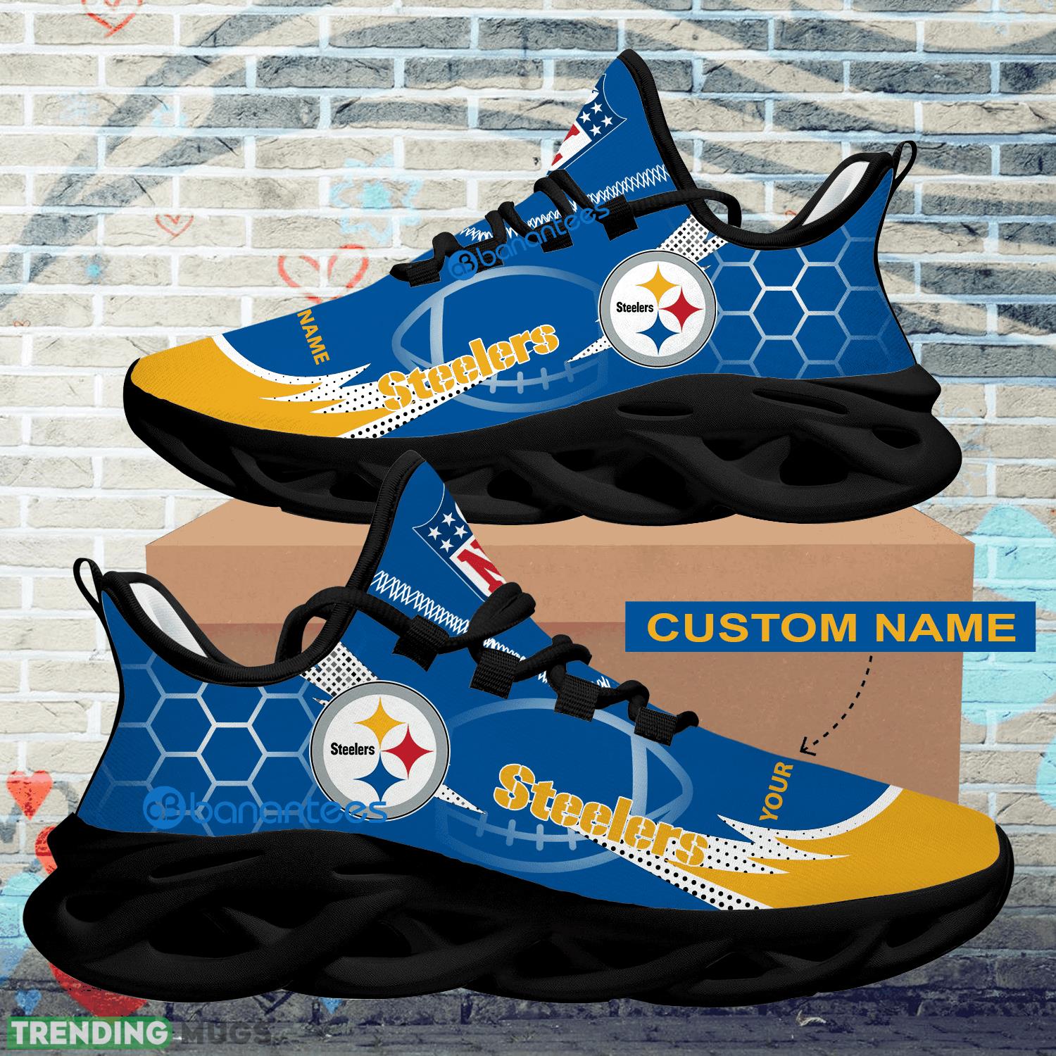 Whether you’re attending a game at the stadium, hitting the gym, or simply going about your day, our Personalized NFL Pittsburgh Steelers Hexagonal Pattern Max Soul Shoes are the ultimate footwear choice for any Steelers enthusiast. Don’t miss out on this opportunity to showcase your team spirit in style. Order your pair today and step up your game like never before!