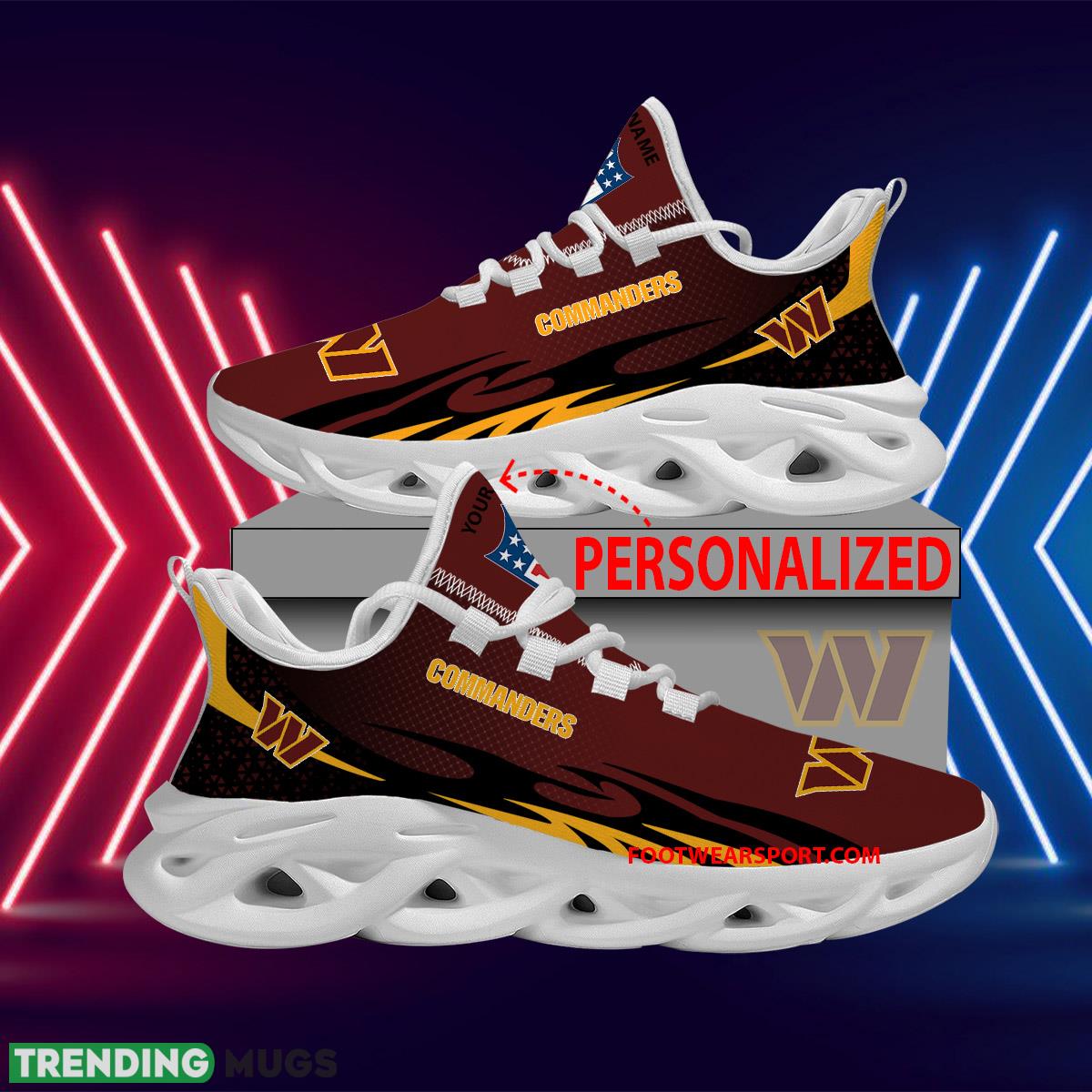 Elevate your game day style with our Personalized NFL Washington Commanders Max Soul Shoes! These New Design Chunky Sneakers are the perfect way to show off your team pride in a unique and stylish way. With a comfortable fit and eye-catching design, these shoes are sure to turn heads wherever you go. Whether you’re hitting the tailgate or cheering from the stands, these sneakers are a must-have for any die-hard Washington Commanders fan. Get ready to step up your shoe game and represent your team in style with these Max Soul Shoes!