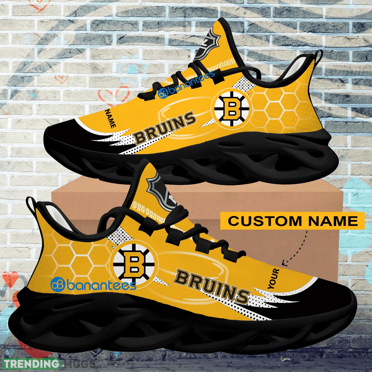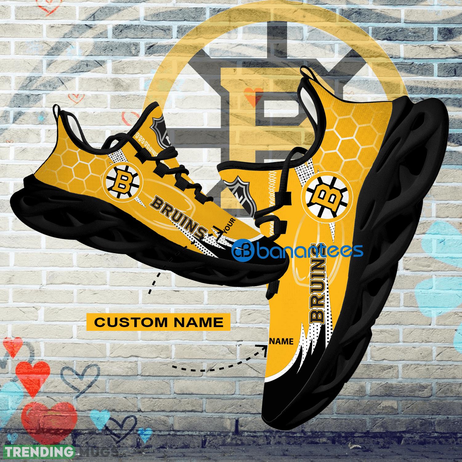 Step up your game with the ultimate fan gear – our Personalized NHL Boston Bruins Hexagonal Pattern Max Soul Shoes! These sneakers are not just your ordinary sports shoes, but a true testament to your love for the Boston Bruins.