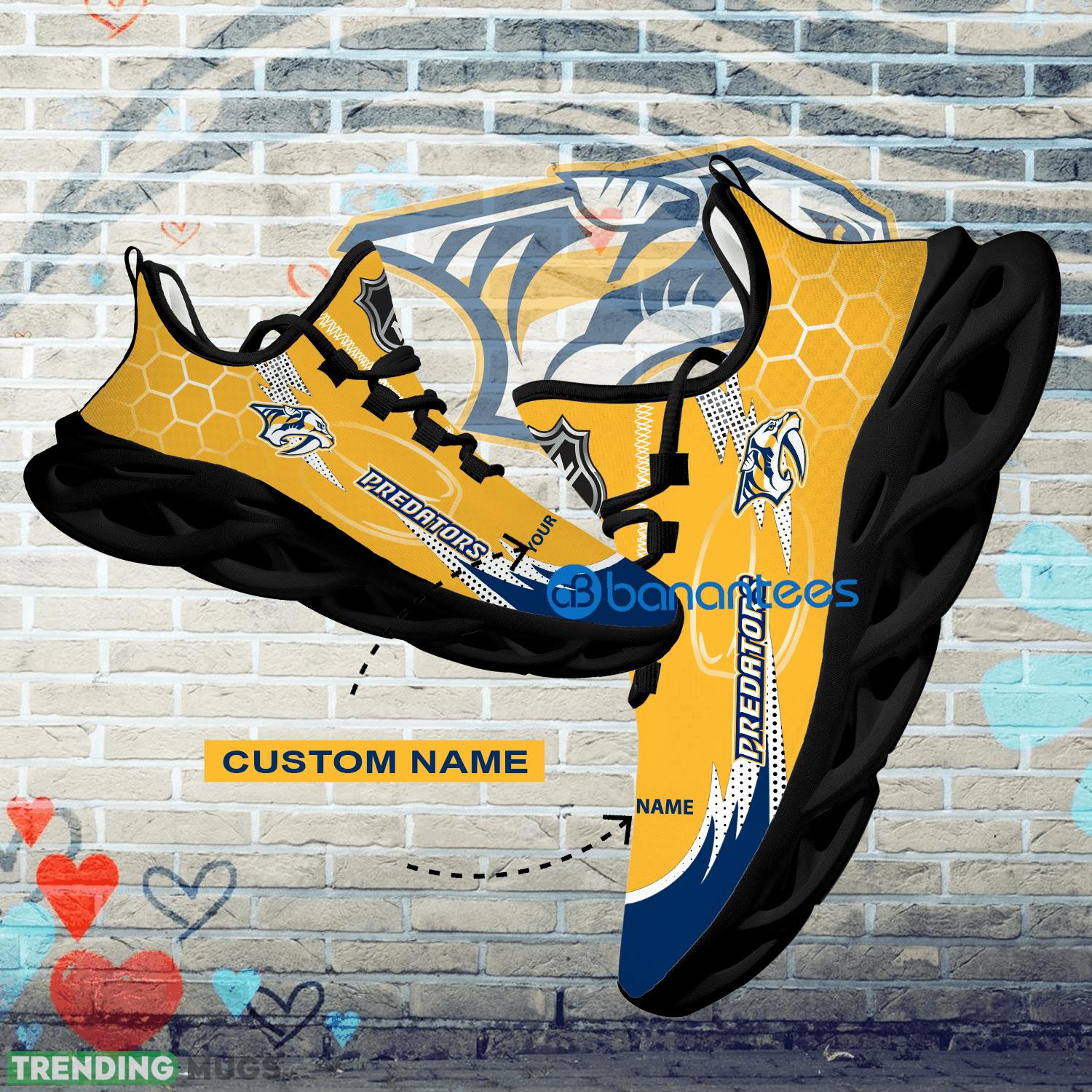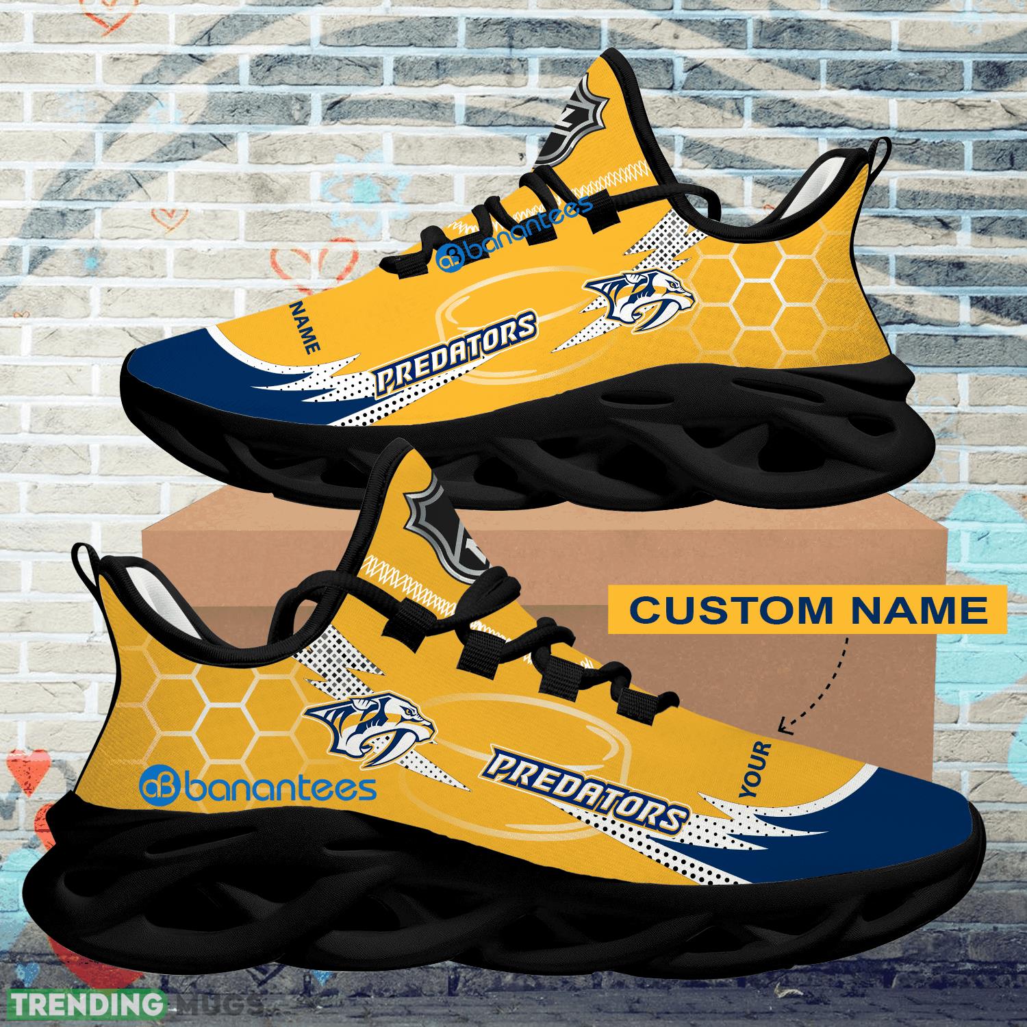 Get ready to show off your love for the NHL Nashville Predators with these Personalized Hexagonal Pattern Max Soul Shoes! These sports sneakers are the perfect gift for any die-hard Predators fan. Designed with a sleek hexagonal pattern, these shoes are not only stylish but also incredibly comfortable.