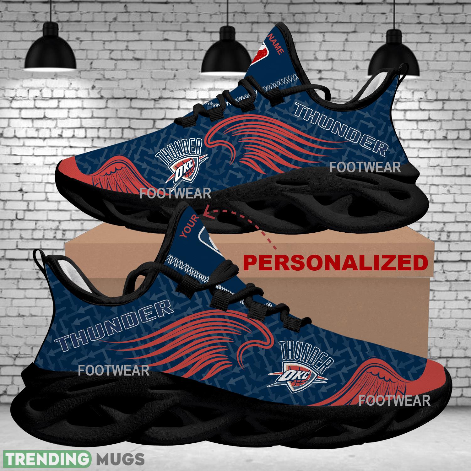 Elevate your sneaker game with our Personalized Oklahoma City Thunder New Wings Arrow Pattern Max Soul Shoes Chunky Sneaker Artistry! These unique sneakers feature a bold arrow pattern inspired by the Thunder’s new wings logo, making them a must-have for any OKC fan. With a chunky sole for added comfort and style, these sneakers are sure to turn heads wherever you go. Step up your shoe game and show off your team pride with these one-of-a-kind kicks.