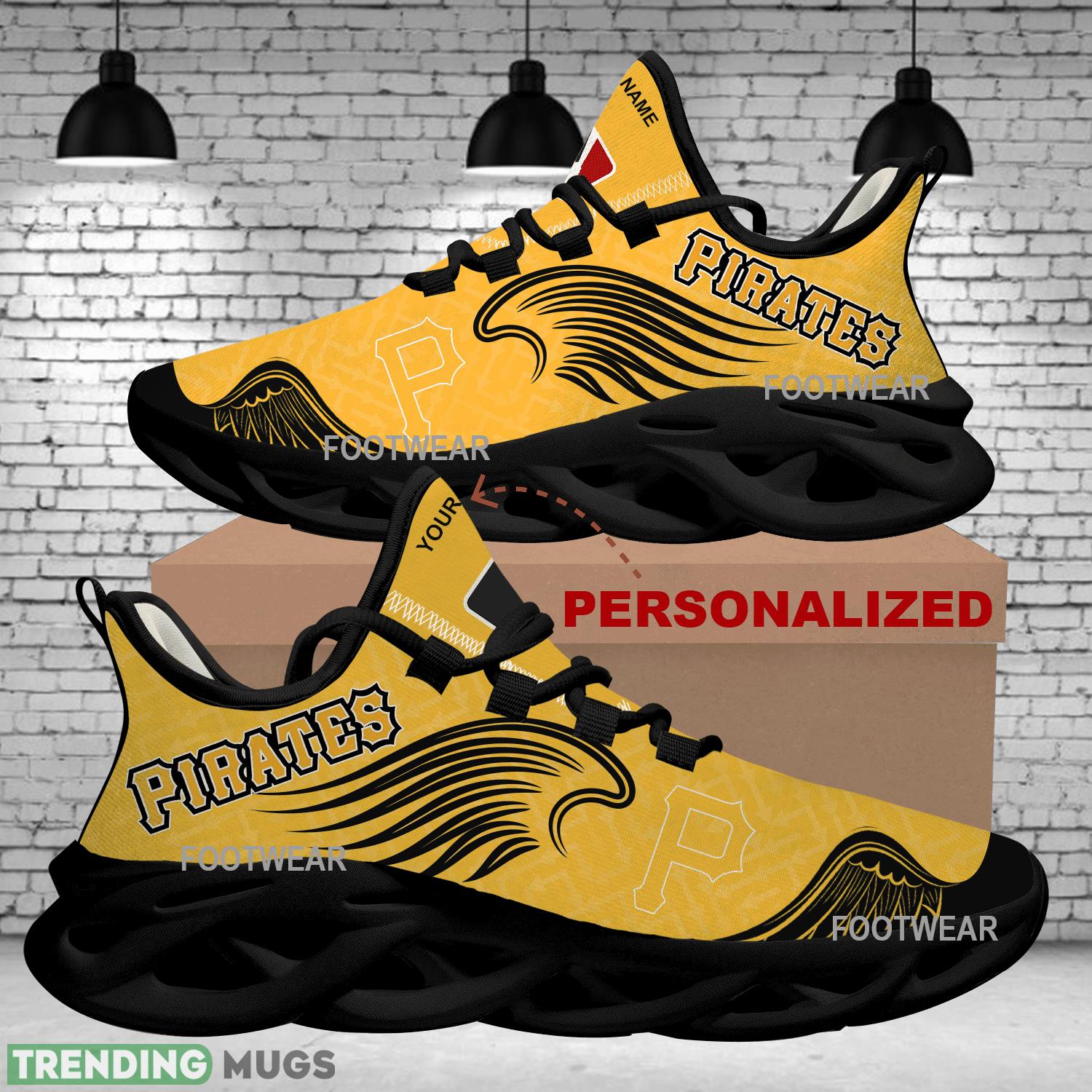 Elevate your sneaker game with our Personalized Pittsburgh Pirates New Wings Arrow Pattern Max Soul Shoes Running Sneaker Insignia!