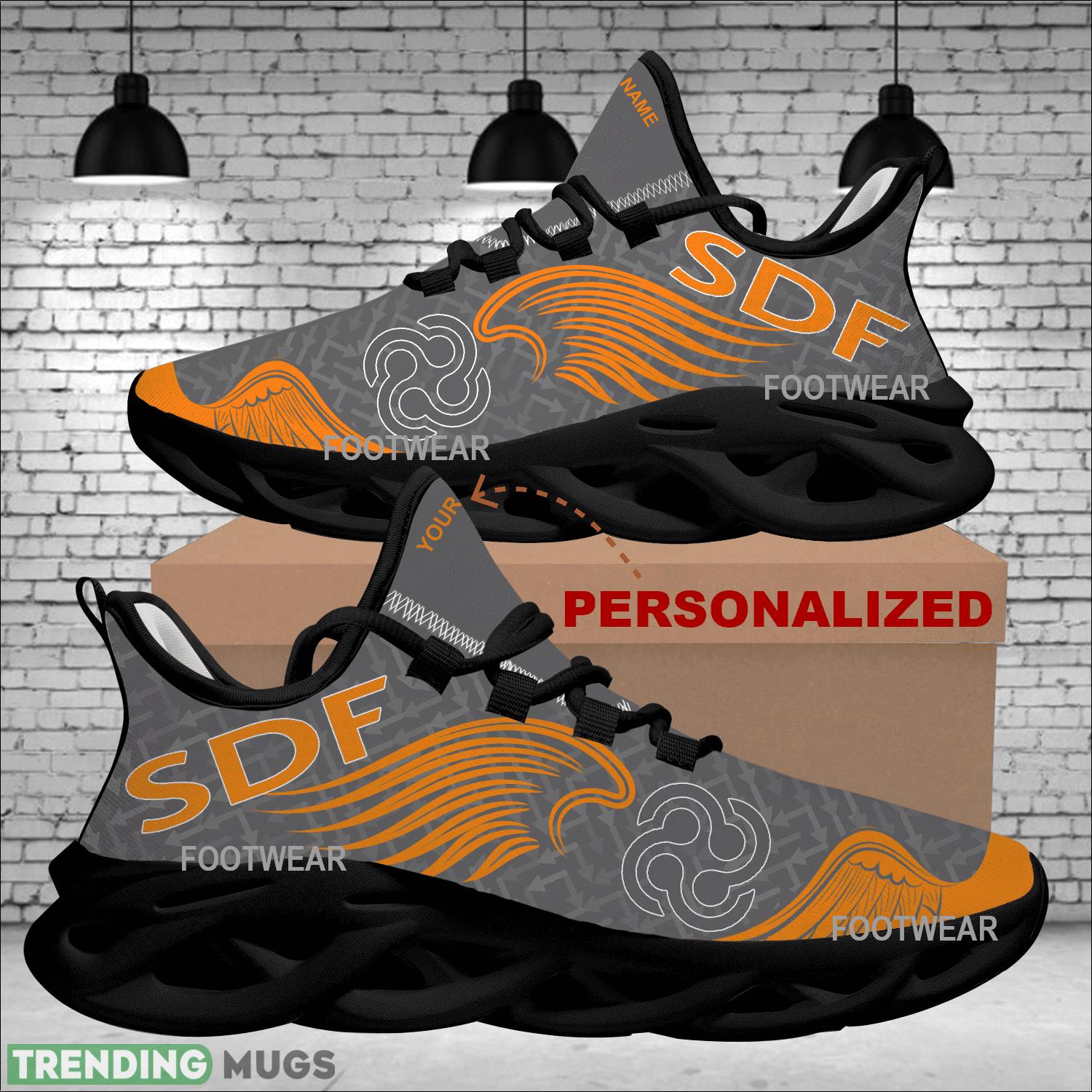This Personalized Truck Farmer SDF group New Wings Arrow Sports Shoes Gift Fans Max Soul Sneakers is a breathable, lightweight, and comfortable casual outdoor shoe that has a unique design. It is made of a mesh fabric which makes it sweat absorbent and breathable, while the rubber bottom ensures traction, comfort, and durability. It is available in two colors: black or white sole. There are two styles of shoelace holes so you can choose your preference.