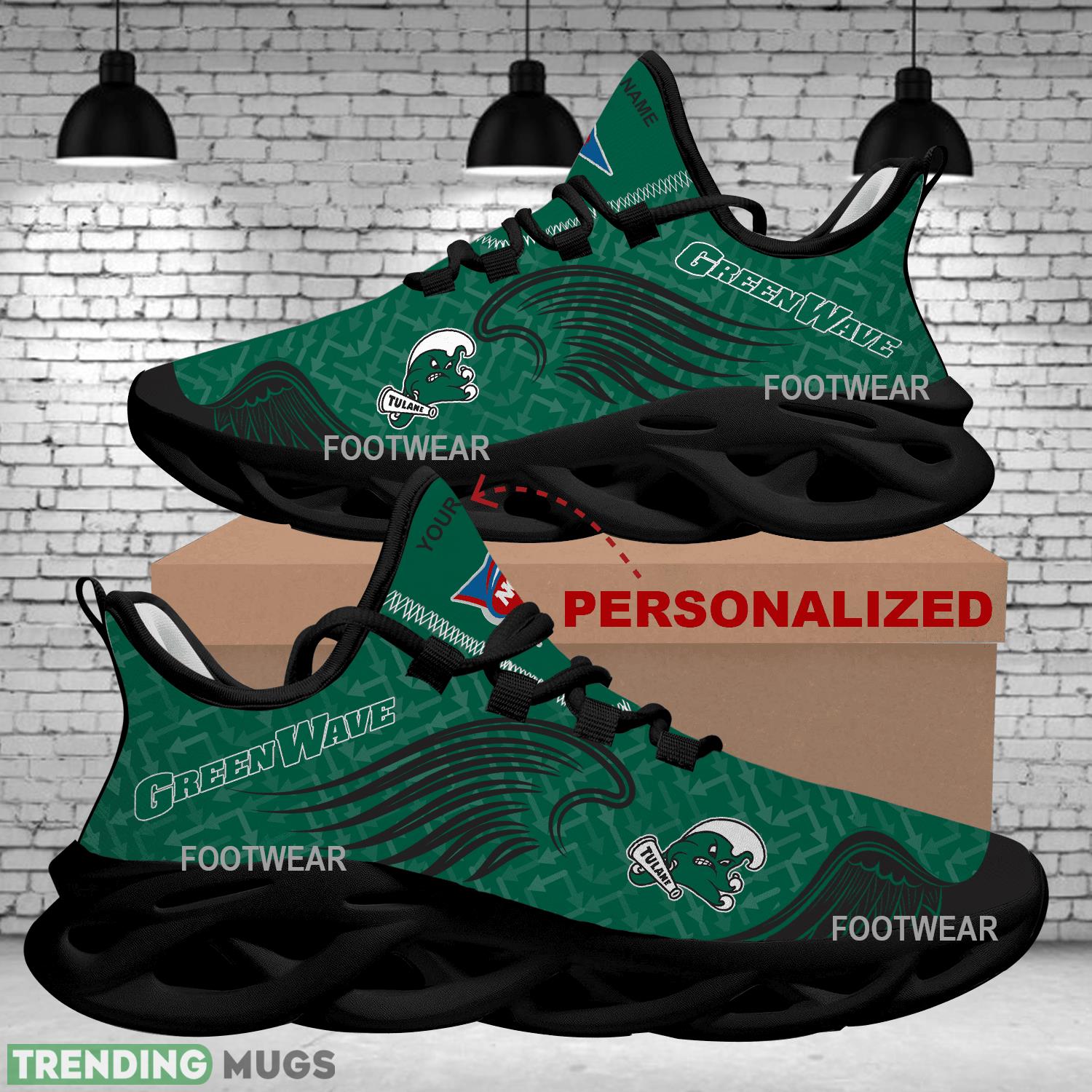 Personalized Tulane Green Wave New Wings Arrow Pattern Max Soul Shoes Chunky Sneaker Trendsetting information: