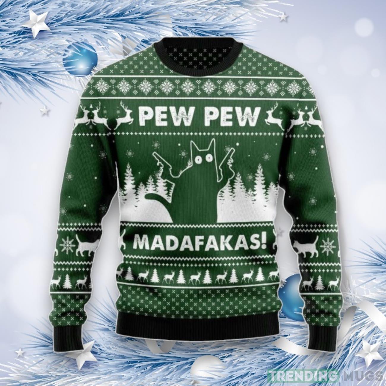 Pew Madafakas Pew Funny Black Cat Ugly Christmas Sweater Informations: