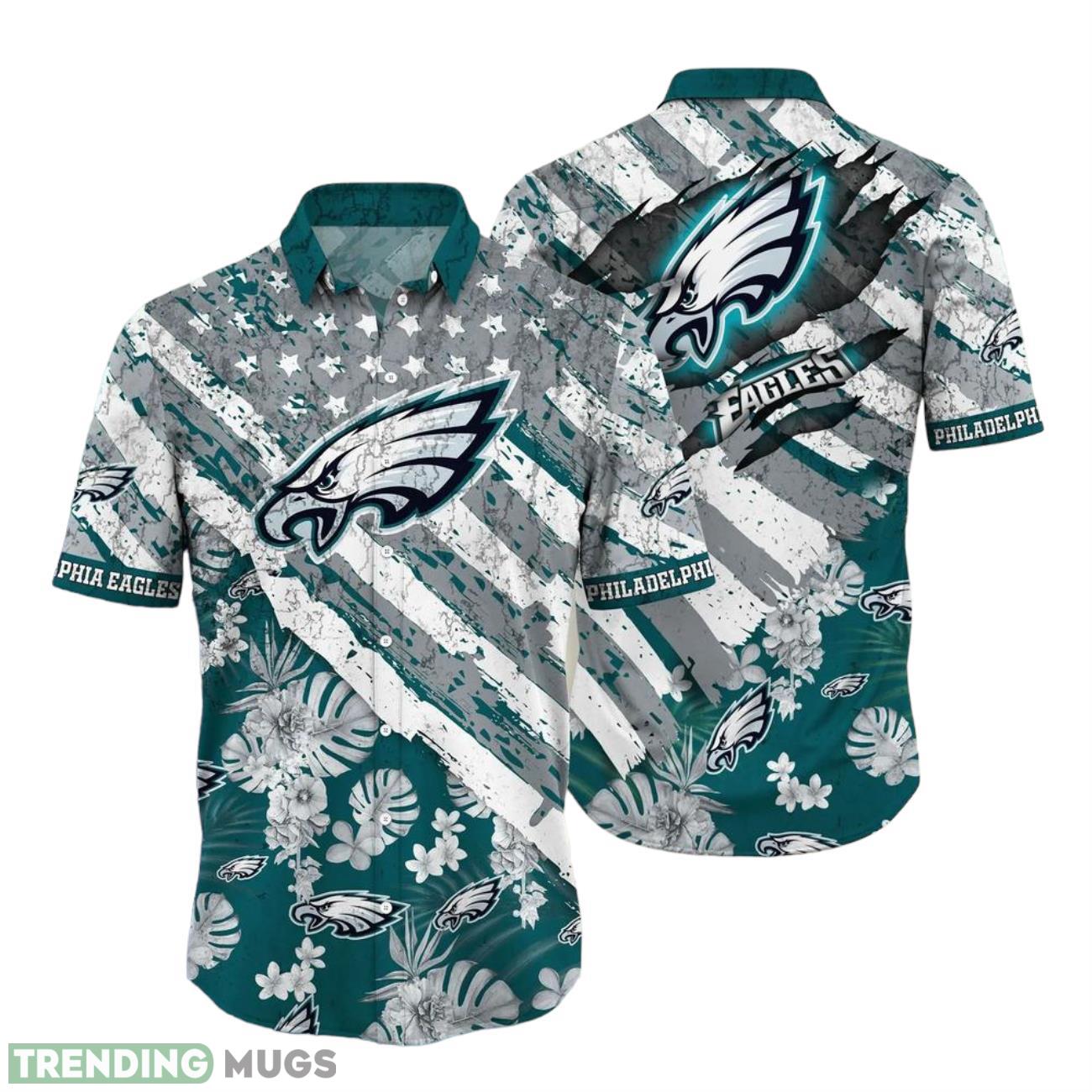 Philadelphia Eagles 3D Hawaiian Shirt NFL Sport Summer Gift Floral Print American Flag Pattern Details: