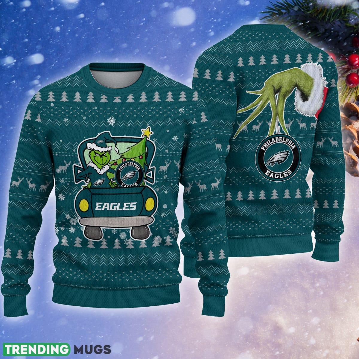 Philadelphia Eagles And Grinch Driving With Pine Trees Ugly Christmas 3D Sweater Gift For Men Women – Philadelphia Eagles And Grinch Driving With Pine Trees Ugly Christmas 3D Sweater Gift For Men Women