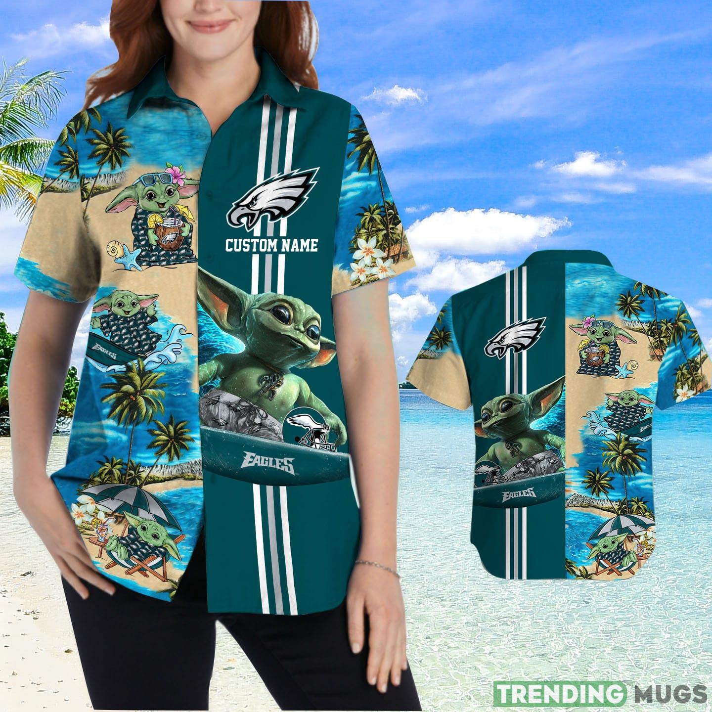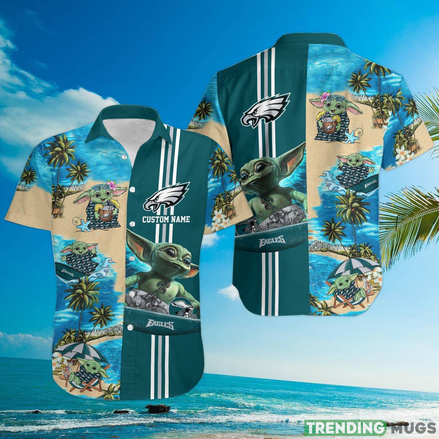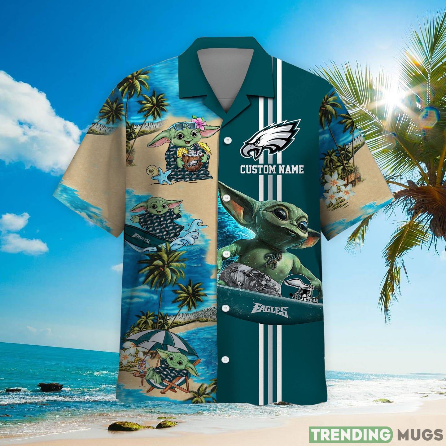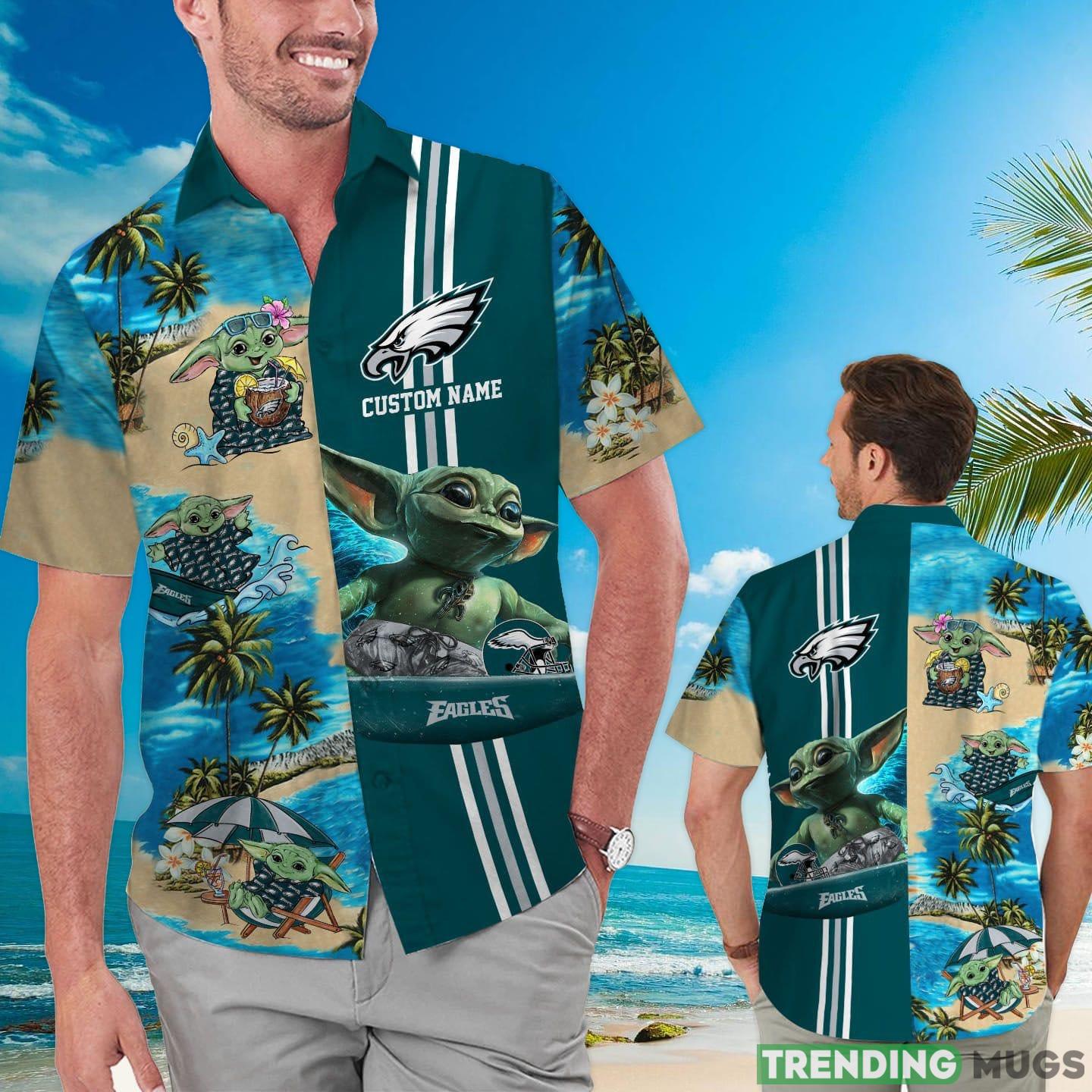 Philadelphia Eagles Baby Yoda Custom Name Hawaiian Shirt Details: