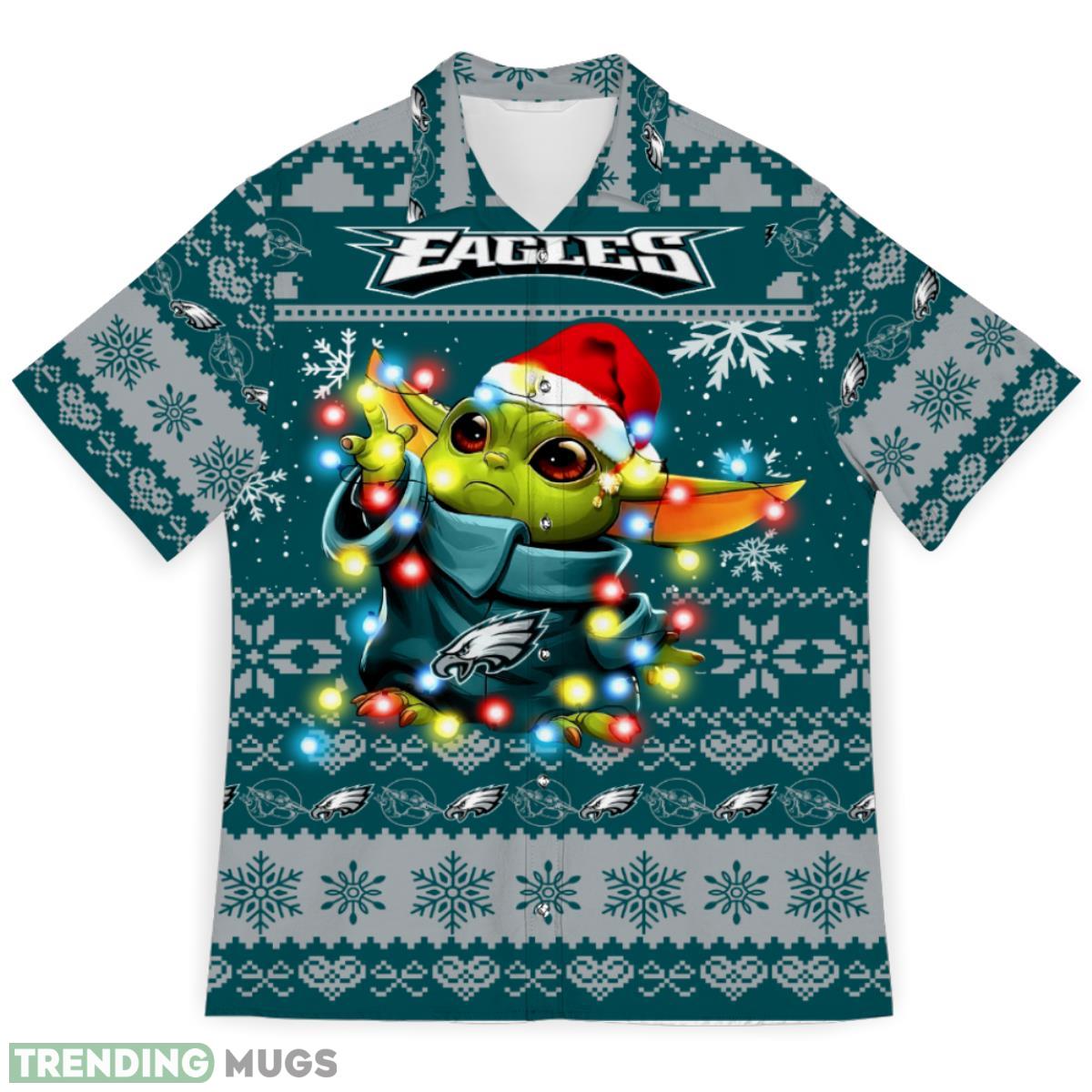 Don’t miss out on the opportunity to showcase your team spirit and love for Star Wars this holiday season. Grab your very own Philadelphia Eagles Baby Yoda Star Wars Sports Football Ugly Christmas Sweater Pattern 3D Hawaiian Shirt now and make a statement wherever you go!